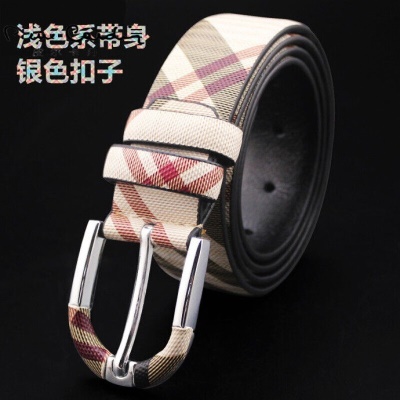 皮尔卡丹(pierre cardin) 男士女真皮腰带青年情侣格子纹休闲针扣牛皮裤带商务百搭皮带 浅色系格纹银色扣子 115cm(2尺8腰35码裤子)¥96.0096.00 -