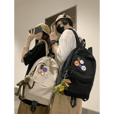酷森书包男初中韩版原宿风高中大学生背包 防泼水尼龙帆布大容量双肩包女 防刮耐磨笔记本电脑包 黑色(带大恐龙挂件+5枚徽章)¥49.00298.00 -