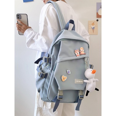 格比森书包男女韩版原宿ulzzang初高中大学生背包 尼龙帆布双肩包大容量防刮耐磨笔记本电脑包 蓝色(带鸭子挂件/带徽章)¥59.00298.00 -