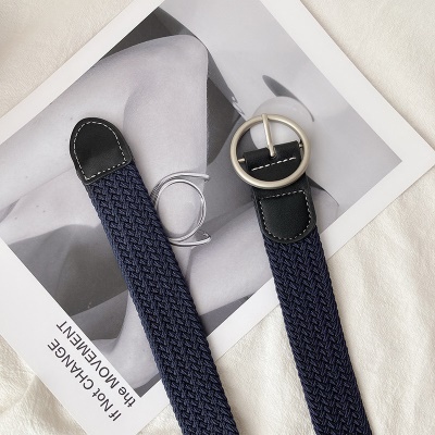 华埠 编织腰带女ins风学生装饰潮流简约时尚百搭男士帆布皮带 圆扣蓝色 90cm¥31.0031.00