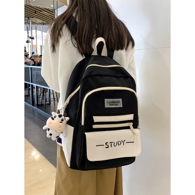 菲派书包女ins新款双肩包 初高中大学生背包大容量韩版耐磨15.6英寸笔记本电脑包校园清新潮酷风 黑色【带奶牛挂件】¥59.00298.00 -