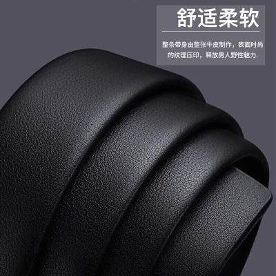 牛当家皮带男 自动扣带身 无头腰带男士头层牛皮商务裤带7029 雅致黑
