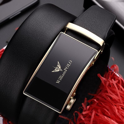英皇保罗 WILLIAMPOLO皮带男青年自动扣头层牛皮腰带商务西裤中年休闲裤带 2600 金色