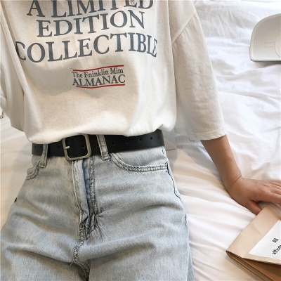 艾罗帝朗 简约风方扣腰带男女通用宽皮带女学生韩国时尚ins裤带百搭黑 小方扣皮带 白色(宽2.3CM)