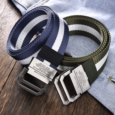 帆布腰带男士皮带双环扣ins女裤腰带潮韩版工装青年学生户外军训 P0061绿色 110cm