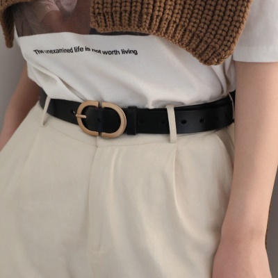 皮带真皮纯牛皮 腰带女ins风简约百搭配牛仔带装饰工装裤韩国男啄木鸟 咖啡色
