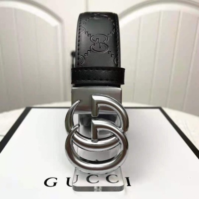 官方酷奇l v皮带h扣愛玛男士奢侈品新款皮带男女通用时尚百搭真皮腰带女黑色简约双G网红裤腰带 GG银扣4.0(男款礼盒包装) 95cm