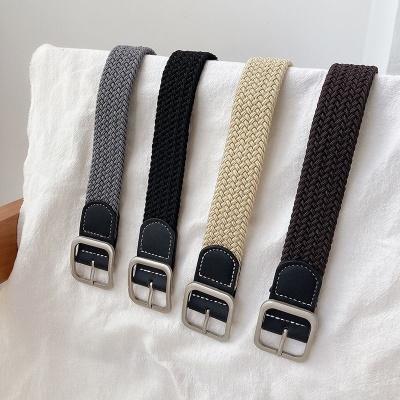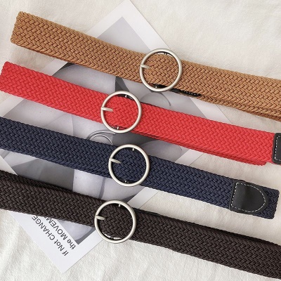 华埠 编织腰带女ins风学生装饰潮流简约时尚百搭男士帆布皮带 圆扣蓝色 90cm