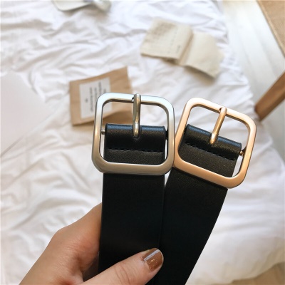 艾罗帝朗 简约风方扣腰带男女通用宽皮带女学生韩国时尚ins裤带百搭黑 A18 黑色