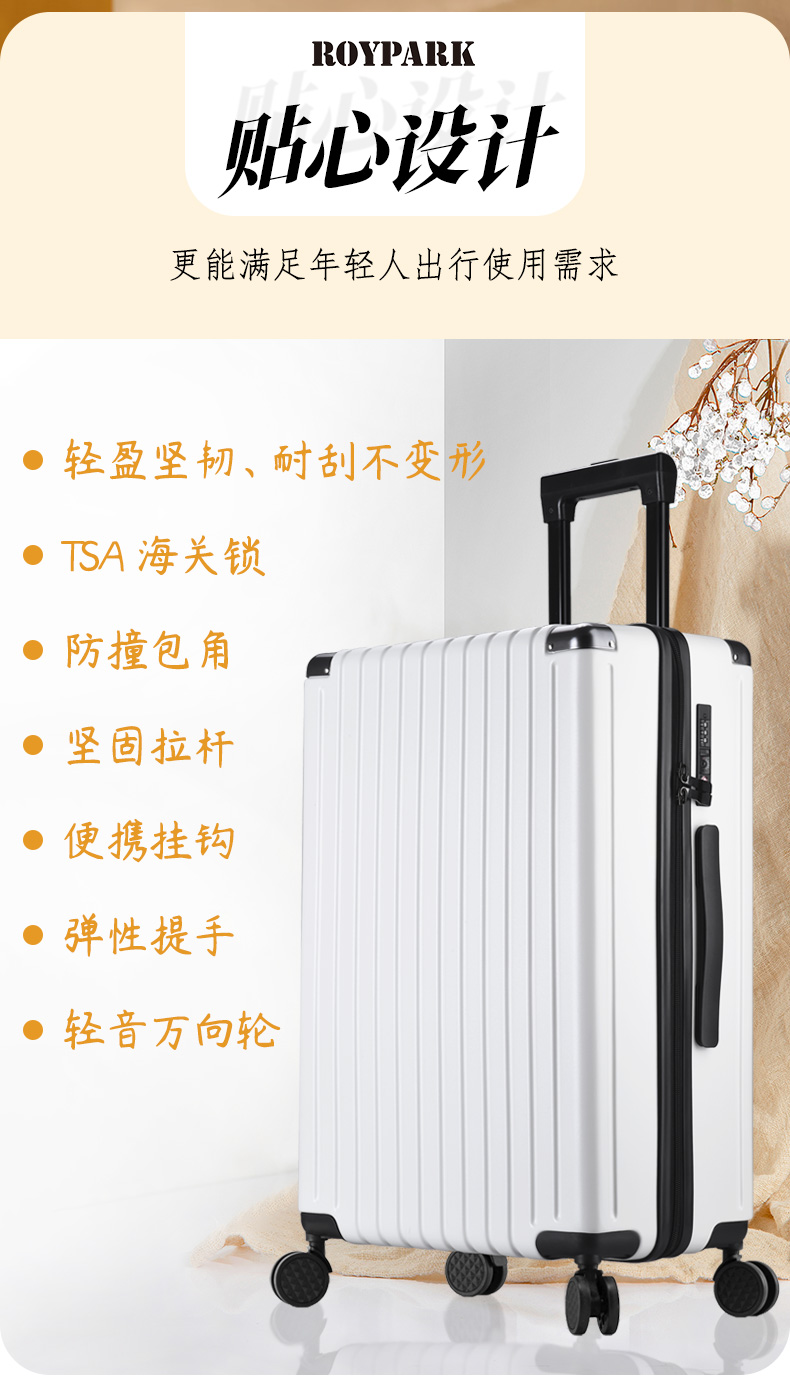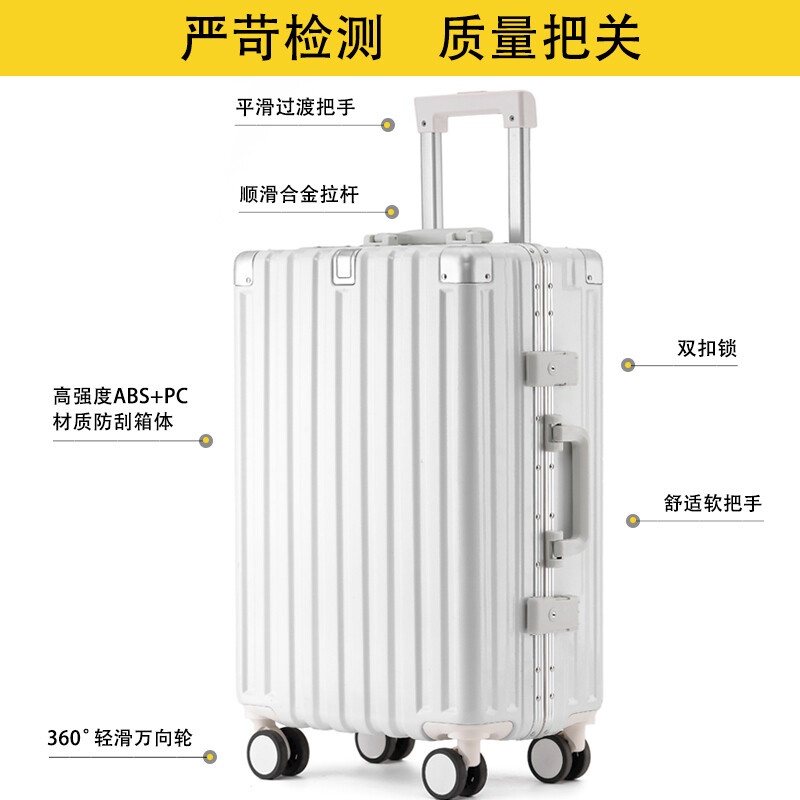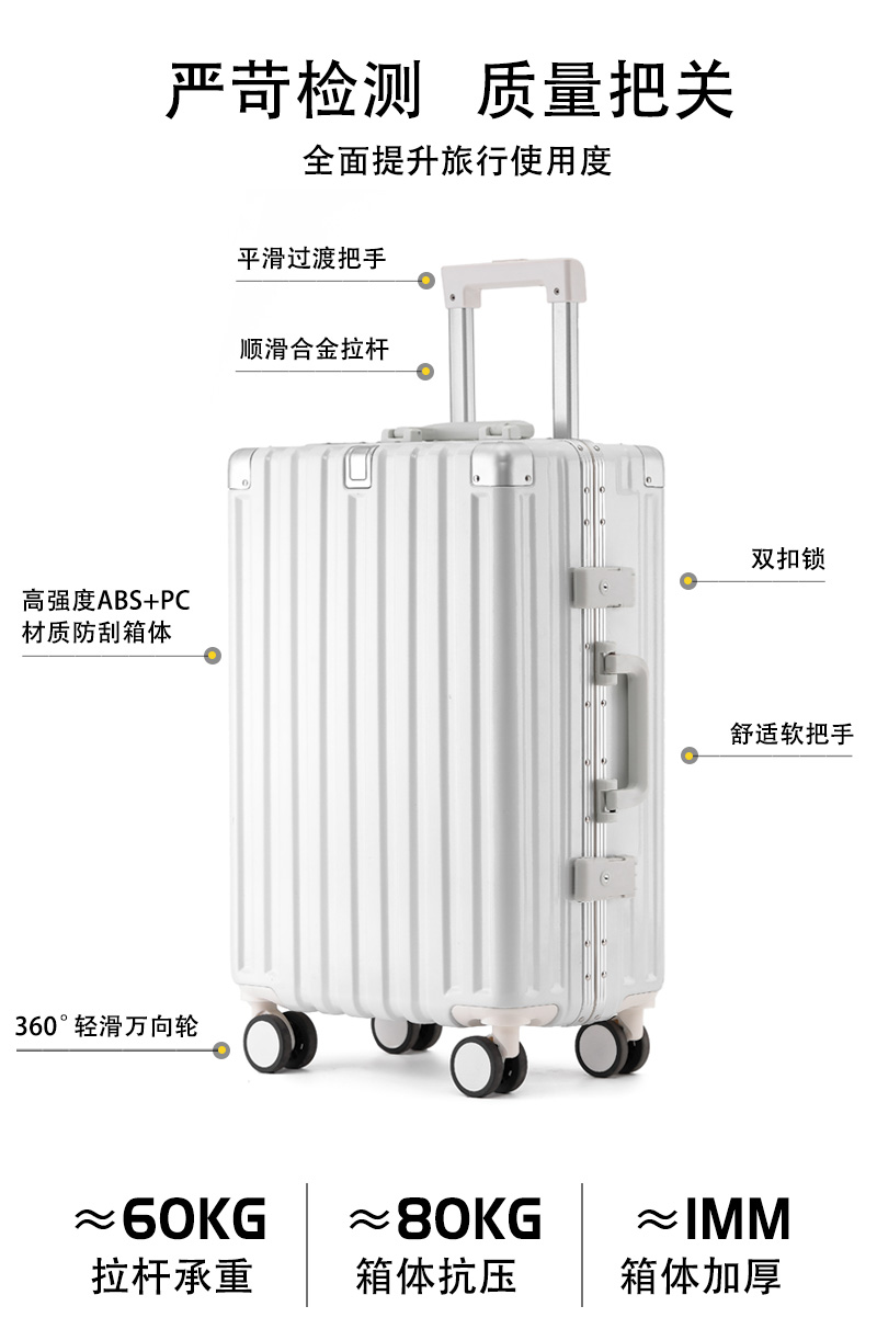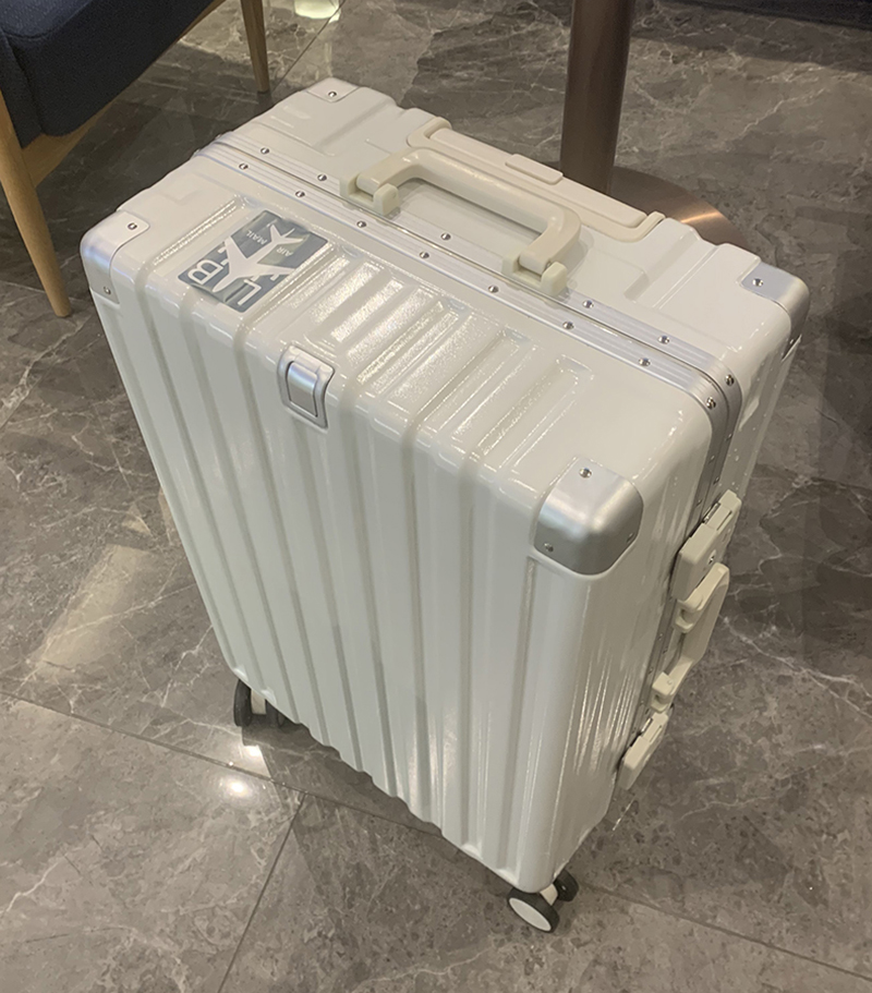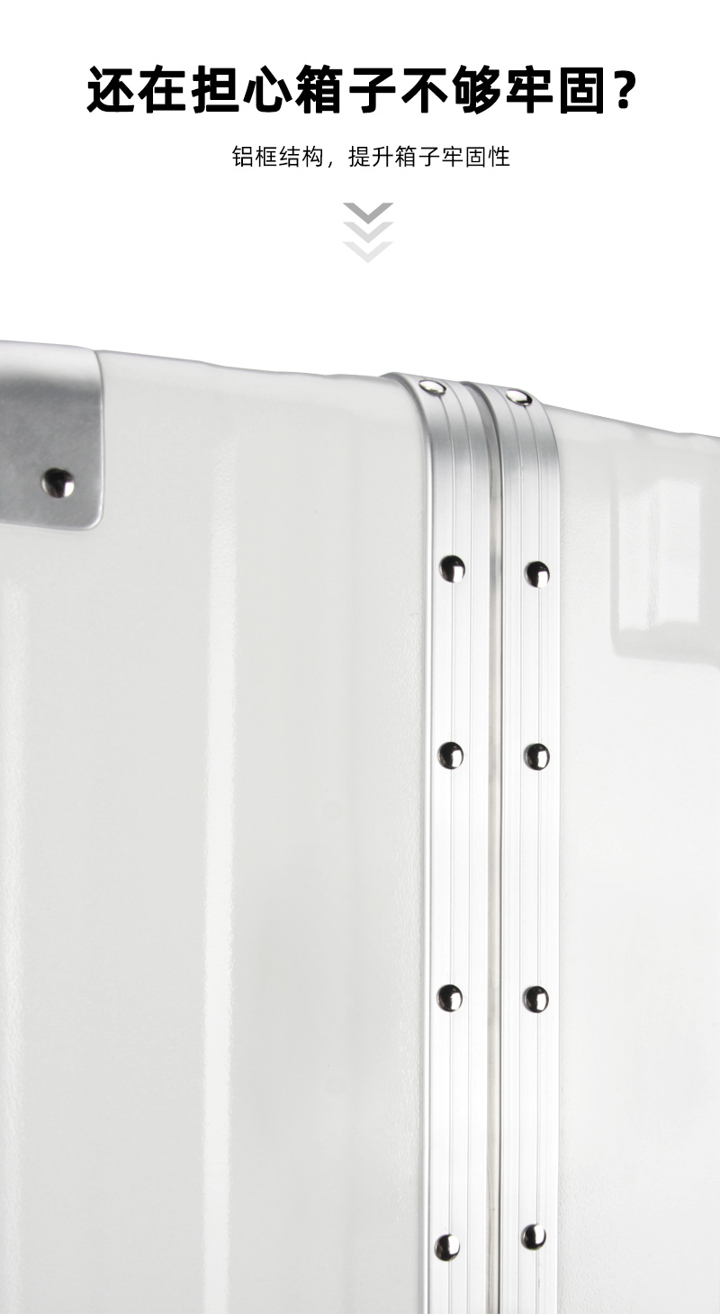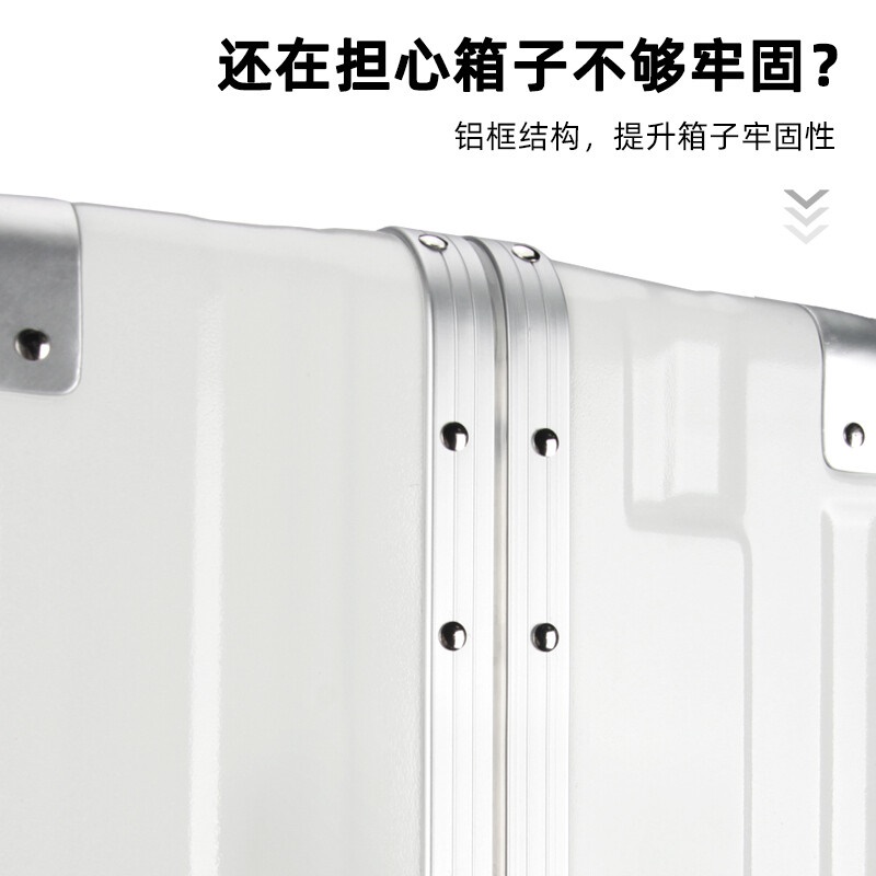 商品名称:ROYPARK短途铝框箱行李箱女高颜值皮箱子登机箱大尺寸箱24英寸拉杆箱女士旅行箱男大号密码箱大容量 牛奶白-[铝框款] 26寸+轻音轮