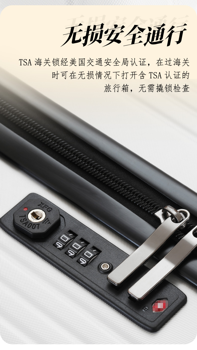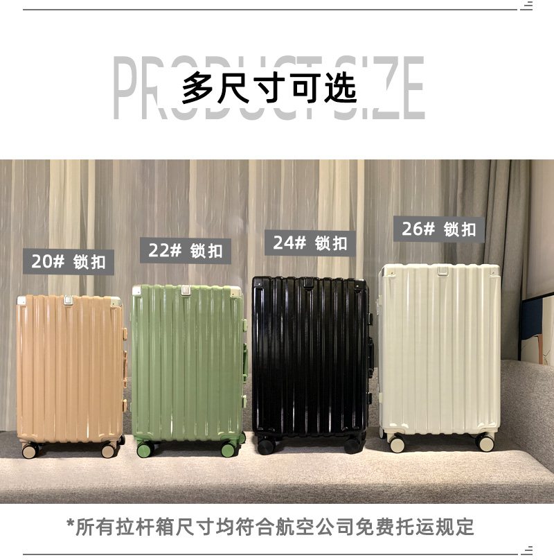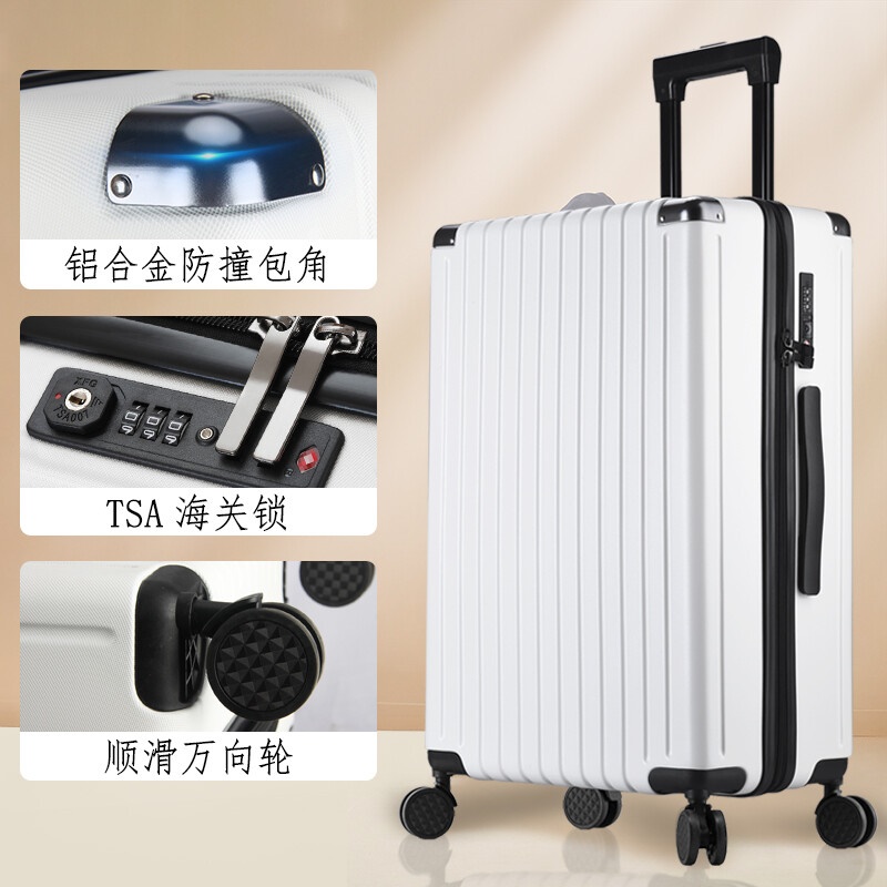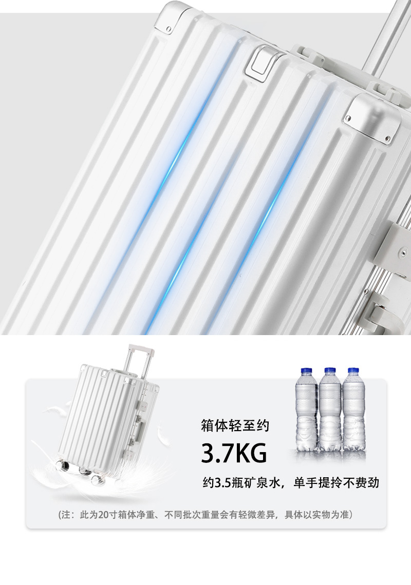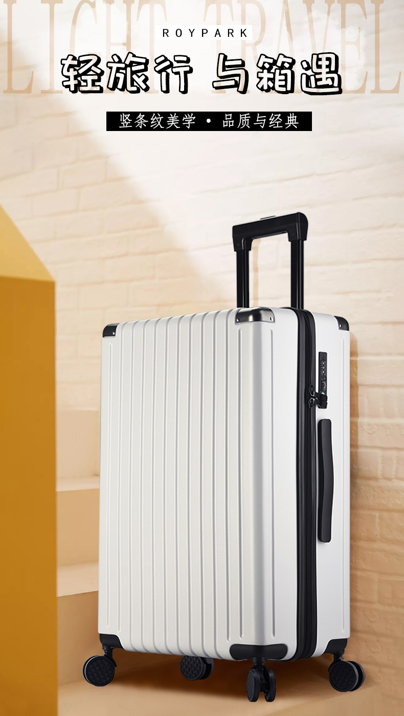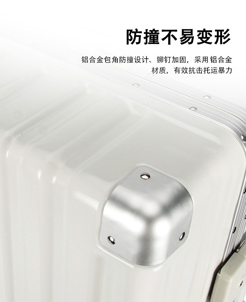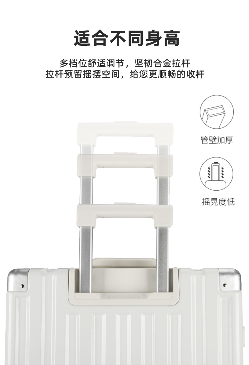 商品名称:ROYPARK短途铝框箱行李箱女高颜值皮箱子登机箱大尺寸箱24英寸拉杆箱女士旅行箱男大号密码箱大容量 牛奶白-[铝框款] 26寸+轻音轮