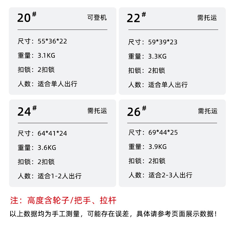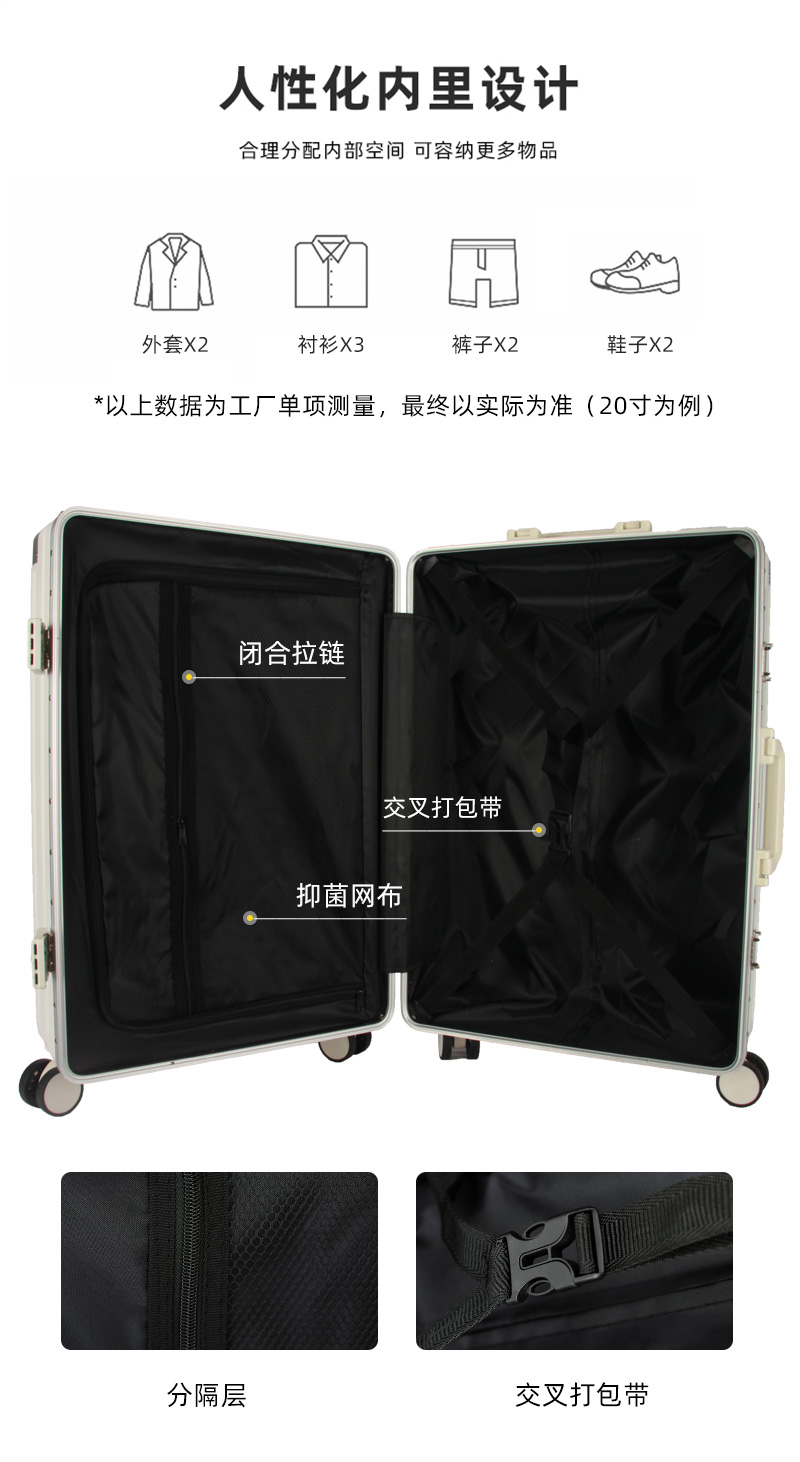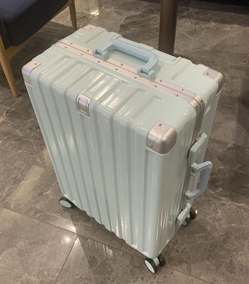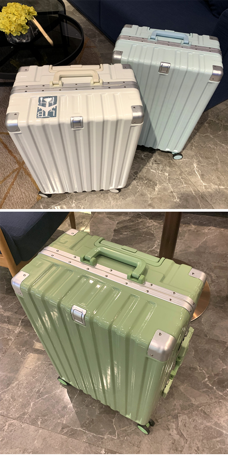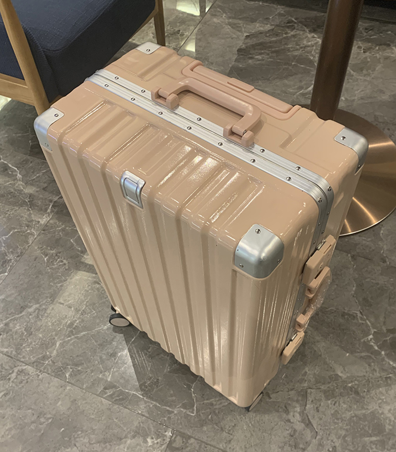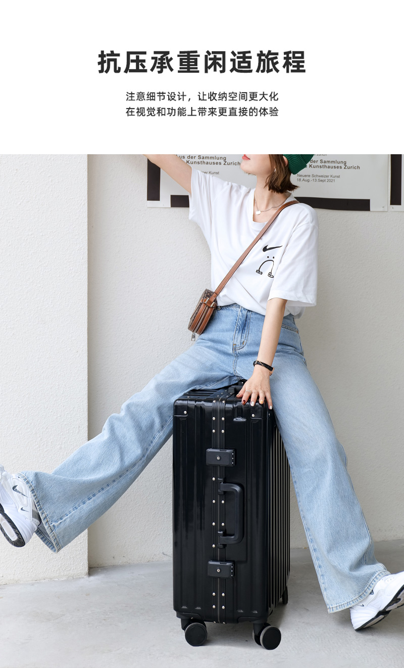 商品名称:ROYPARK短途铝框箱行李箱女高颜值皮箱子登机箱大尺寸箱24英寸拉杆箱女士旅行箱男大号密码箱大容量 牛奶白-[铝框款] 26寸+轻音轮