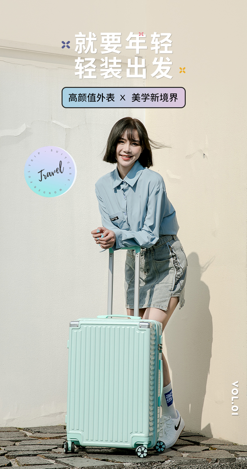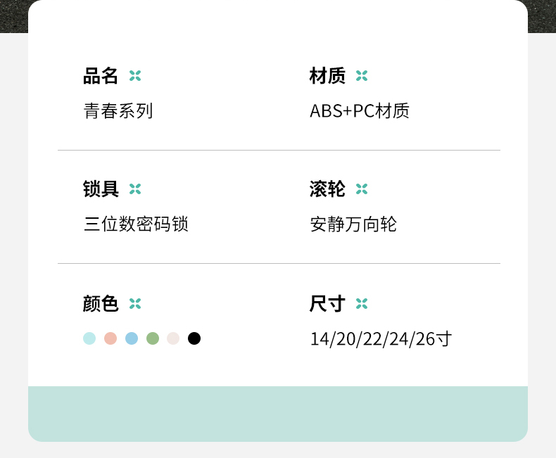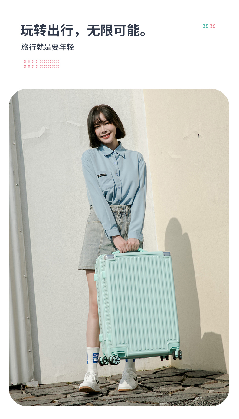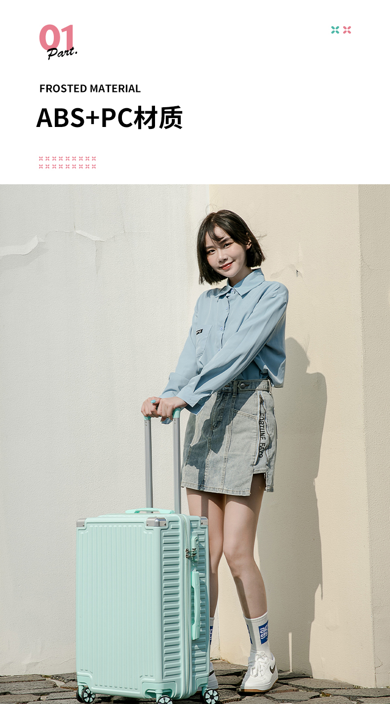 商品名称:Milooky 行李箱PC拉杆箱耐磨抗摔万向轮旅行箱拉链密码箱登机箱简约时尚男女学生马卡龙可爱箱子20英寸 浅绿