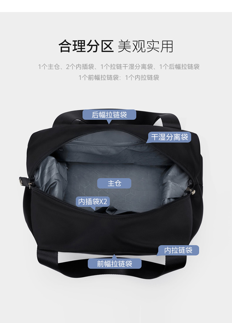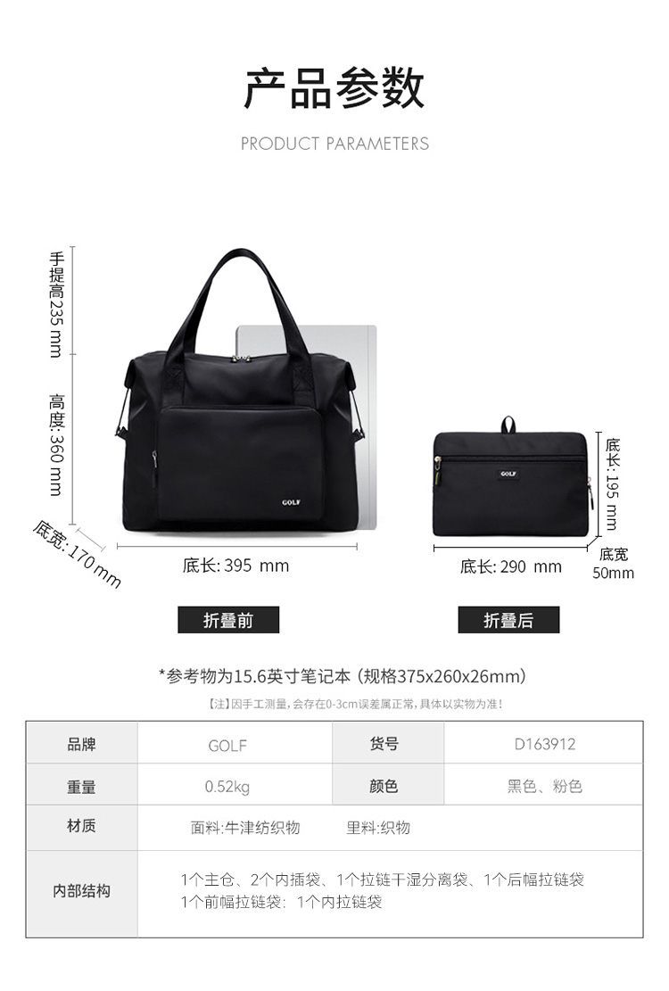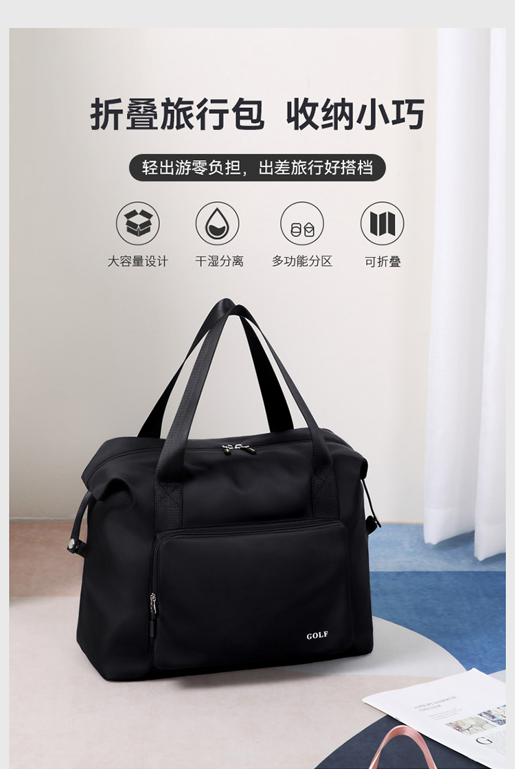商品名称:高尔夫GOLF旅行包可折叠大容量行李包袋男/女轻便防泼水手提包干湿分离运动健身包多隔层出差旅游包 黑色