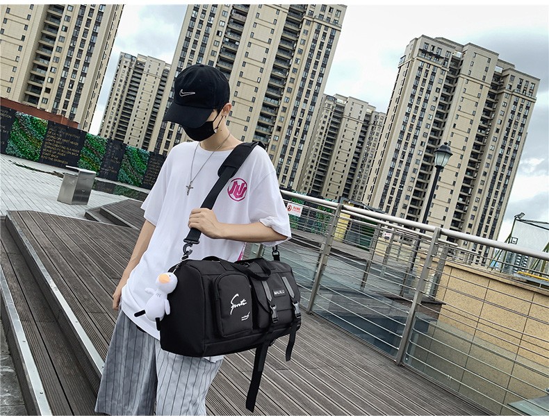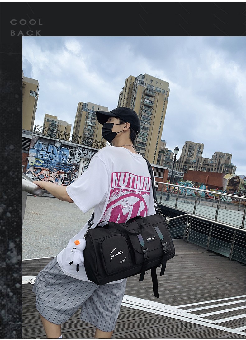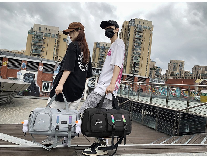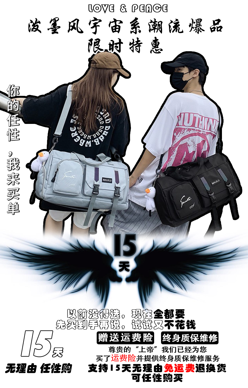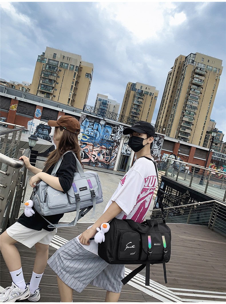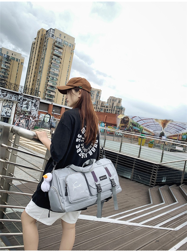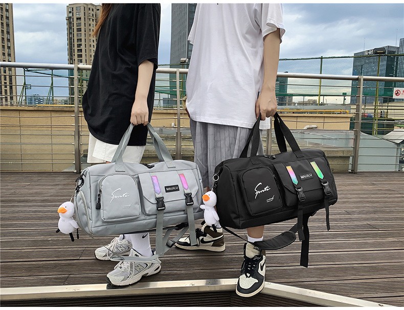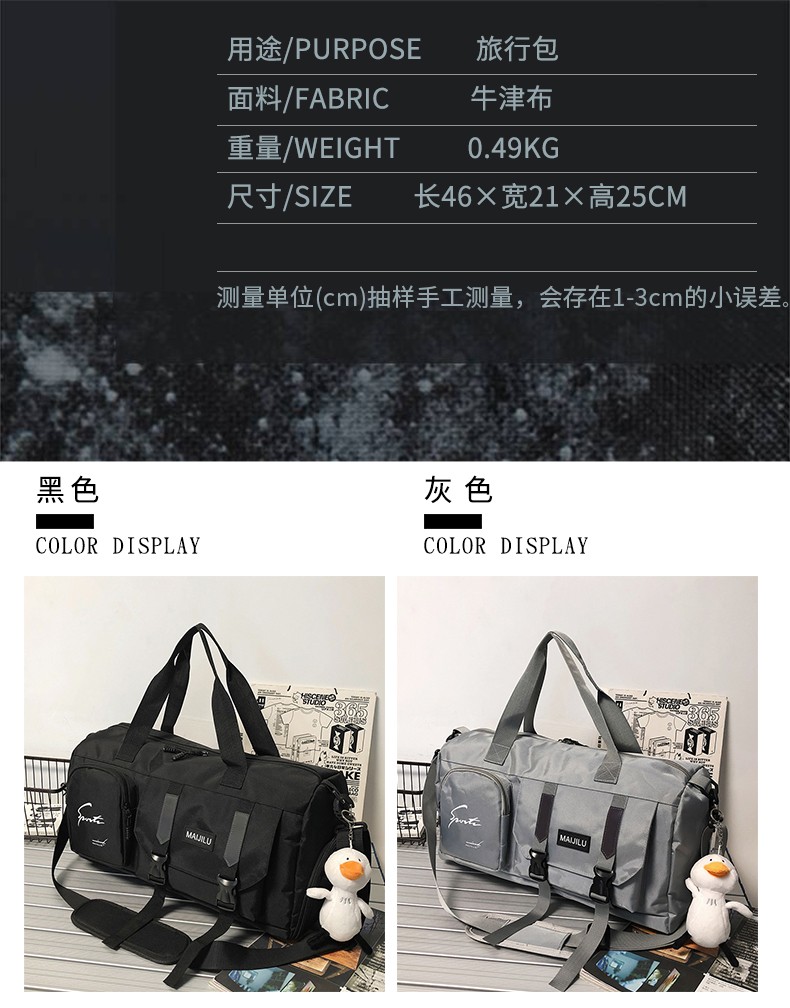 商品名称:酷森旅行包男行李包大容量健身包 干湿分离新款单肩斜挎运动包女防泼水时尚学生收纳行李袋出差休闲手提包 灰色【带鸭子挂件】