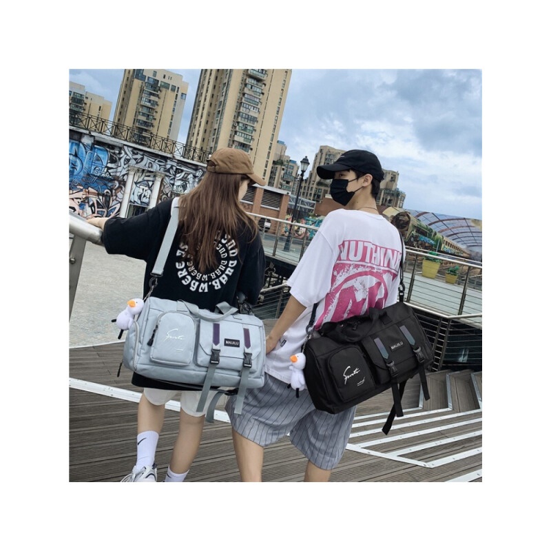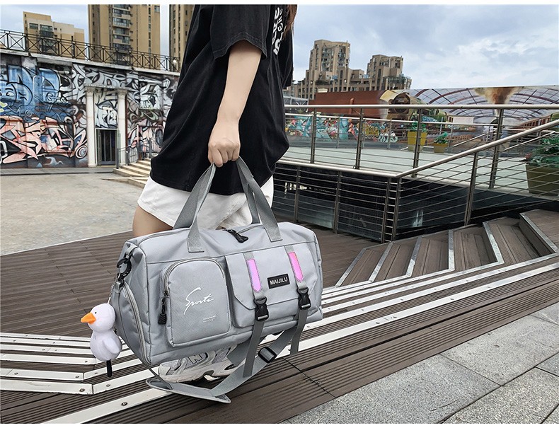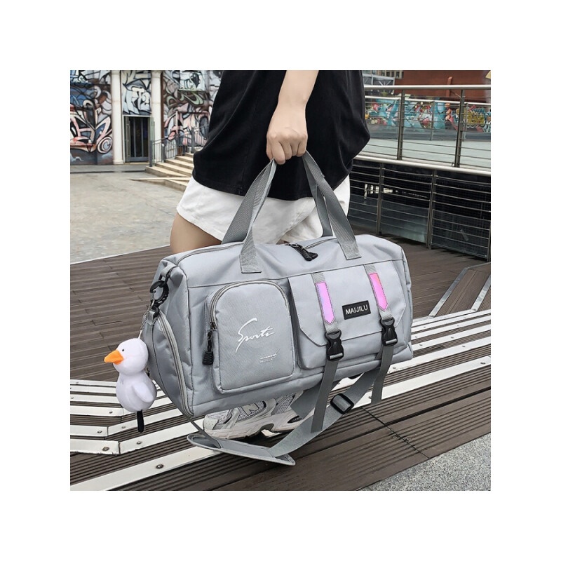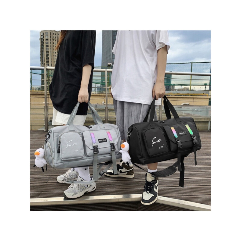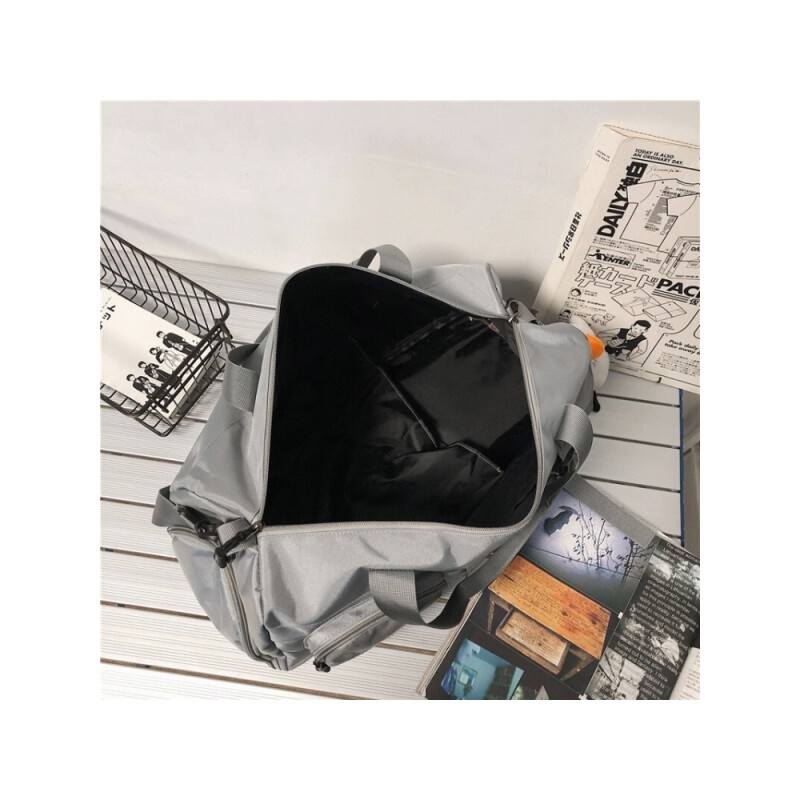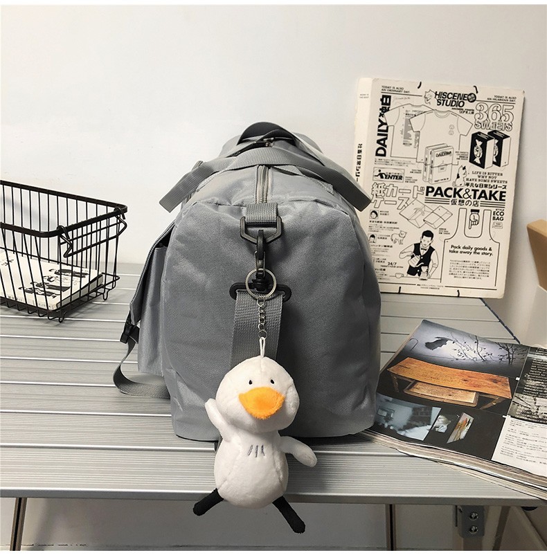 酷森旅行包男行李包大容量健身包 干湿分离新款单肩斜挎运动包女防泼水时尚学生收纳行李袋出差休闲手提包 灰色【带鸭子挂件】