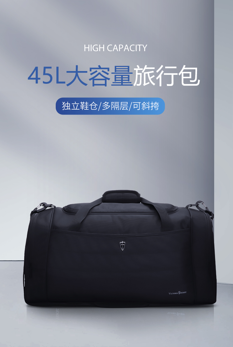 维多利亚旅行者 VICTORIATOURIST 旅行包男女 手提包大容量多功能旅行袋 单肩包V7006黑色