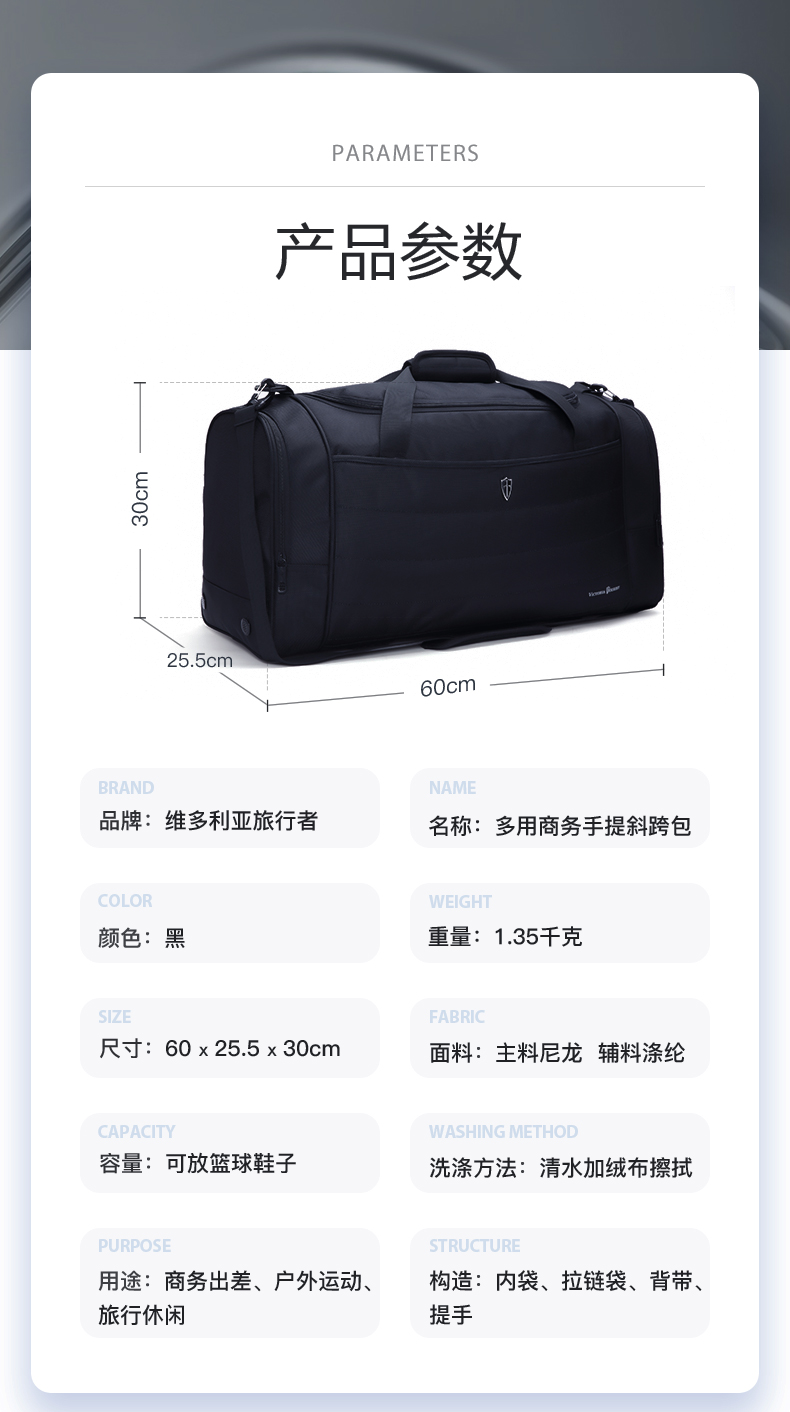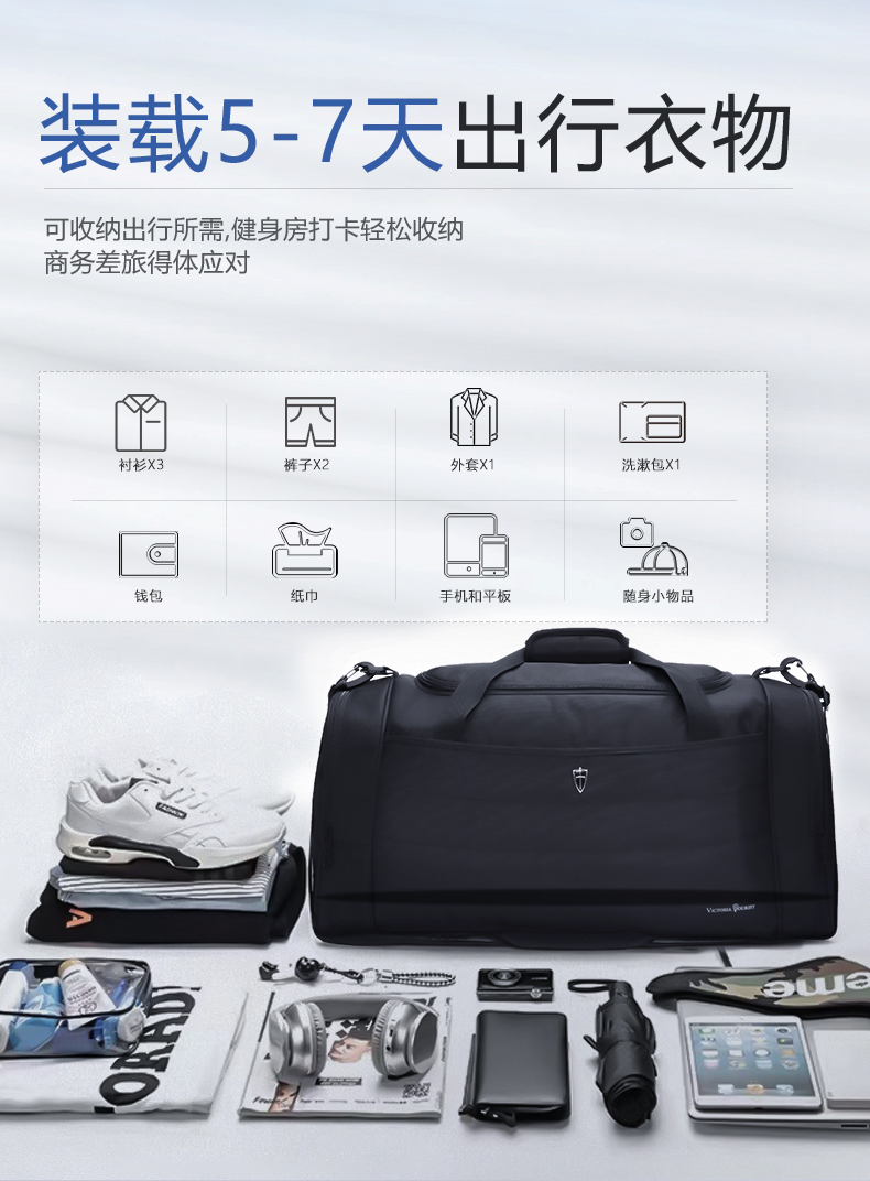 商品名称:维多利亚旅行者 VICTORIATOURIST 旅行包男女 手提包大容量多功能旅行袋 单肩包V7006黑色