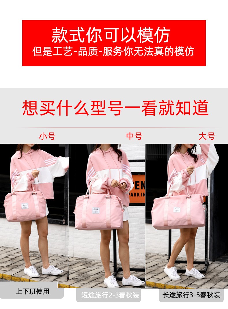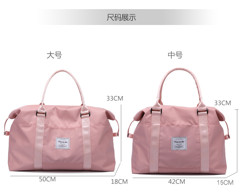 商品名称:凡凡麦旅 旅行包大容量手提行李包短途出差旅游袋女士单肩斜挎包待产包防水尼龙包男士韩版潮包 玫瑰金-无肩带 大号