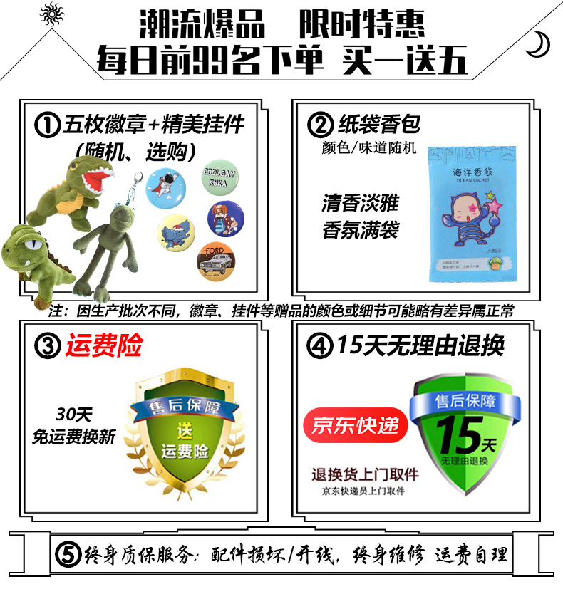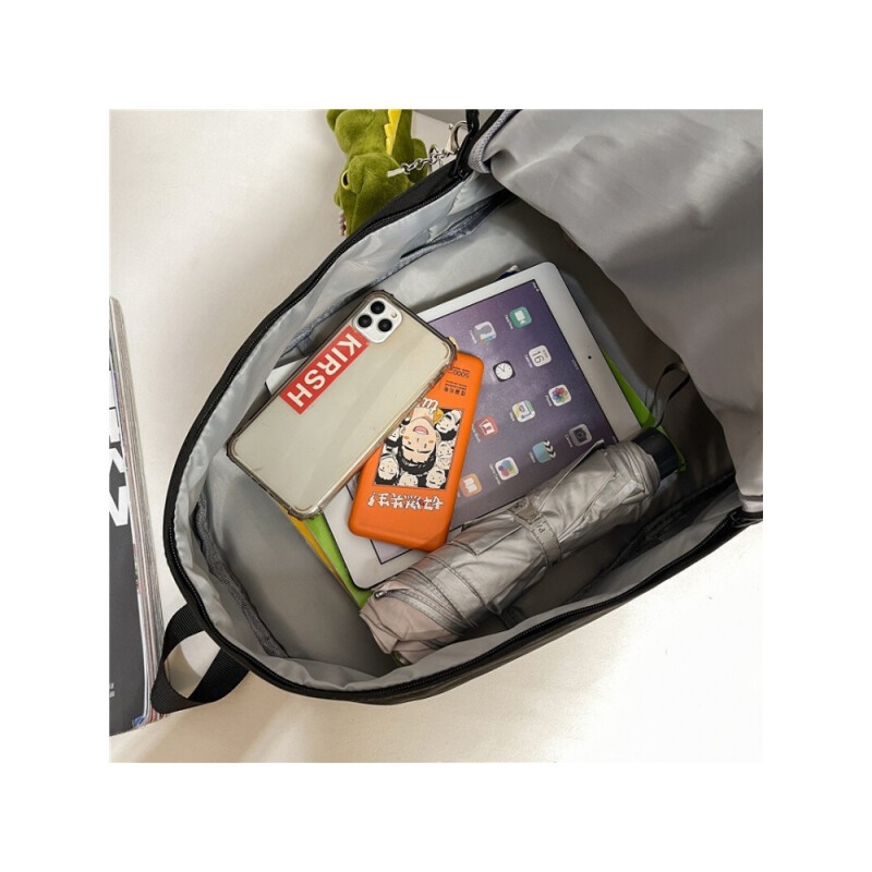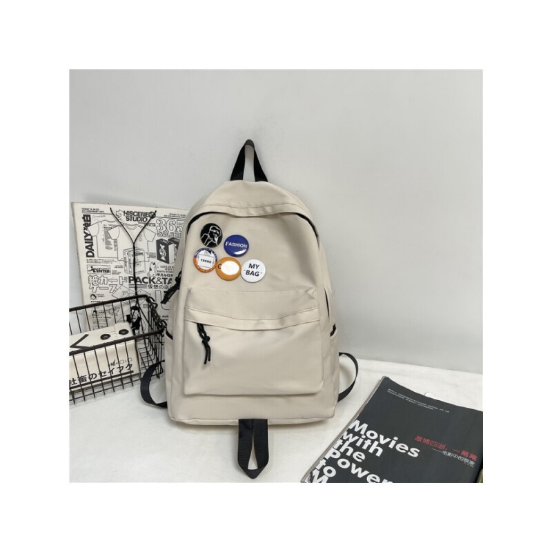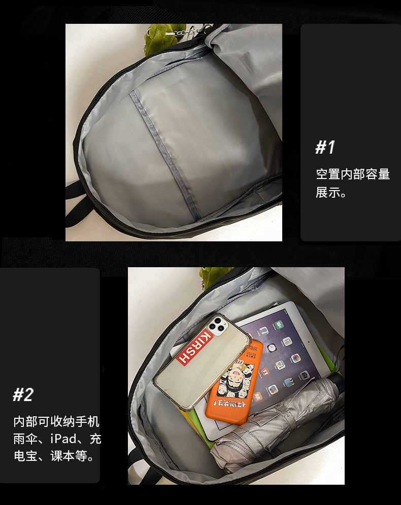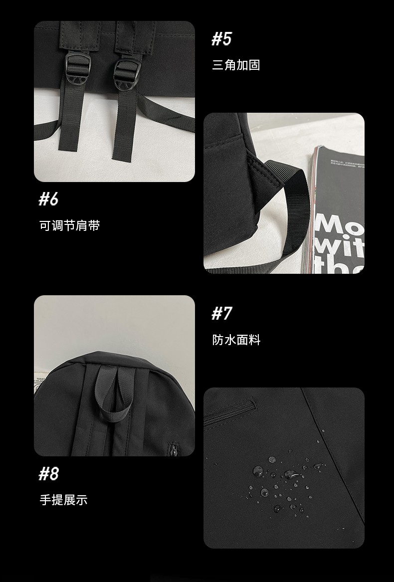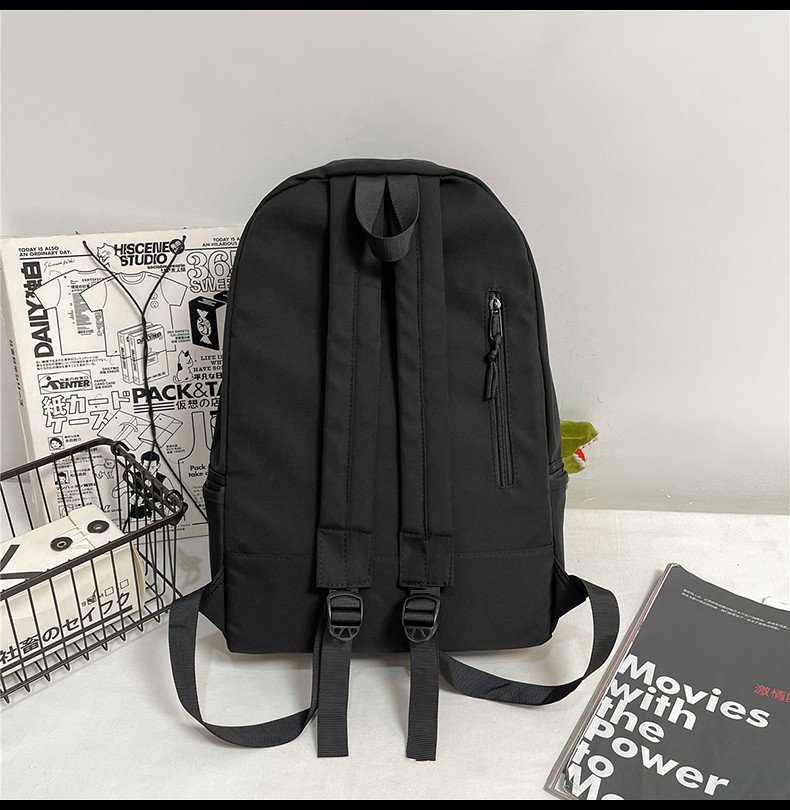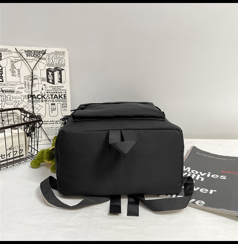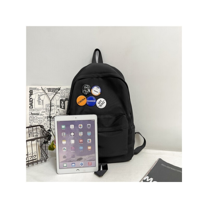 商品名称:酷森书包男初中韩版原宿风高中大学生背包 防泼水尼龙帆布大容量双肩包女 防刮耐磨笔记本电脑包 黑色(带大恐龙挂件+5枚徽章)