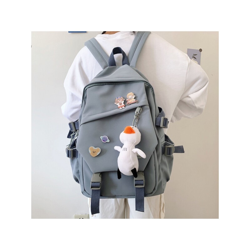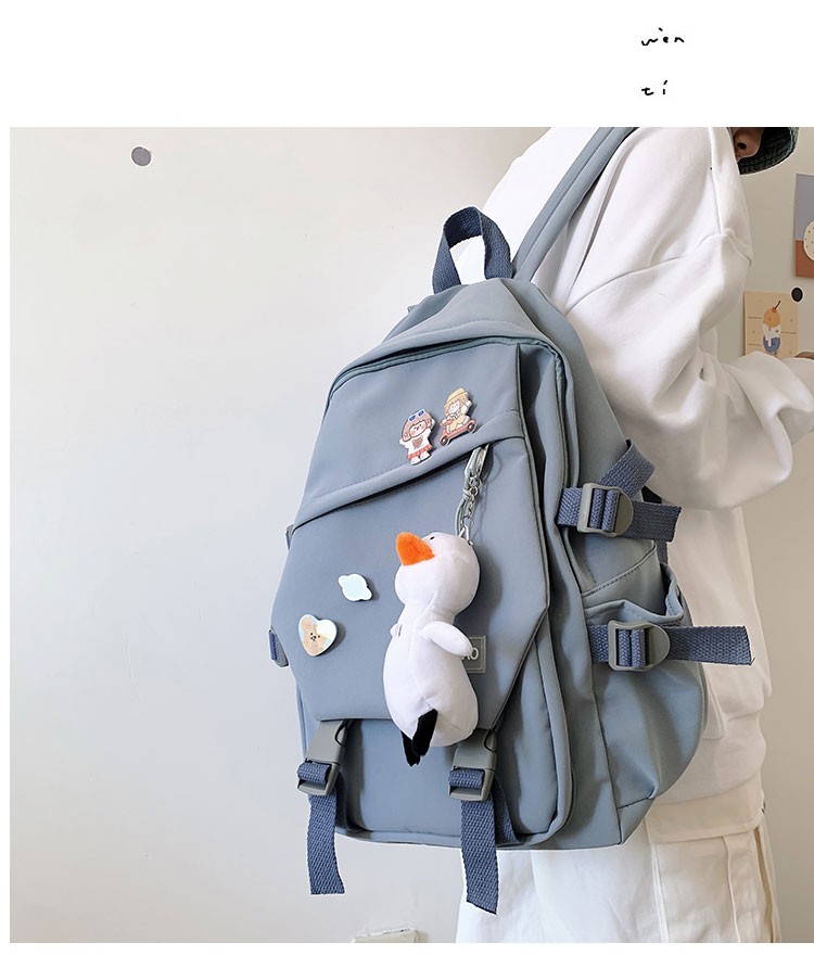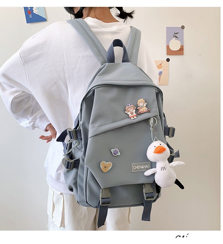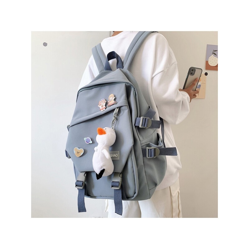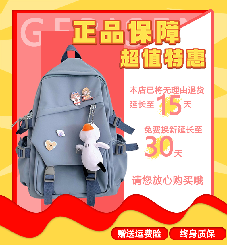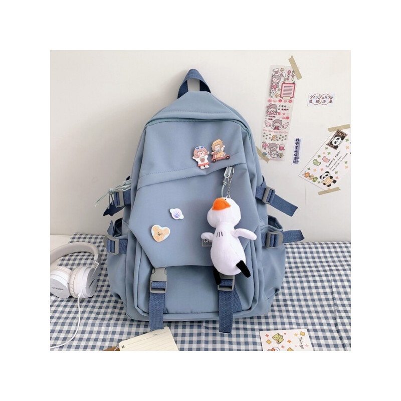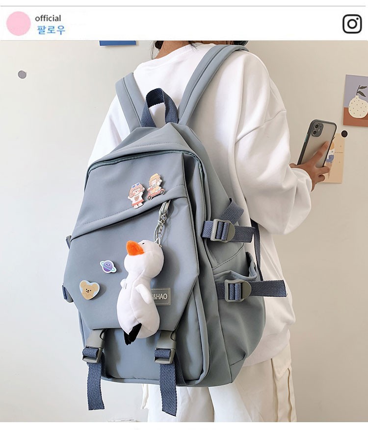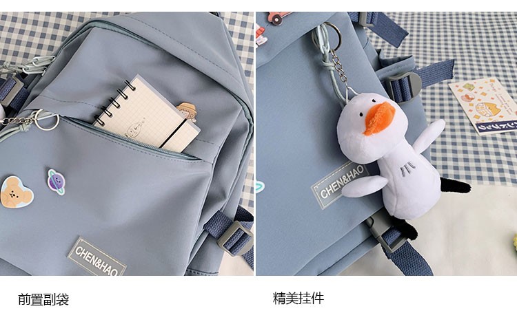 商品名称:格比森书包男女韩版原宿ulzzang初高中大学生背包 尼龙帆布双肩包大容量防刮耐磨笔记本电脑包 蓝色(带鸭子挂件/带徽章)