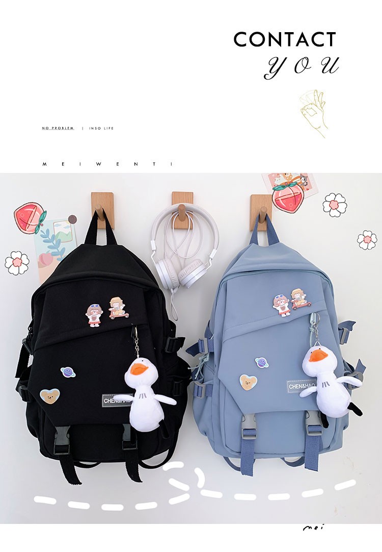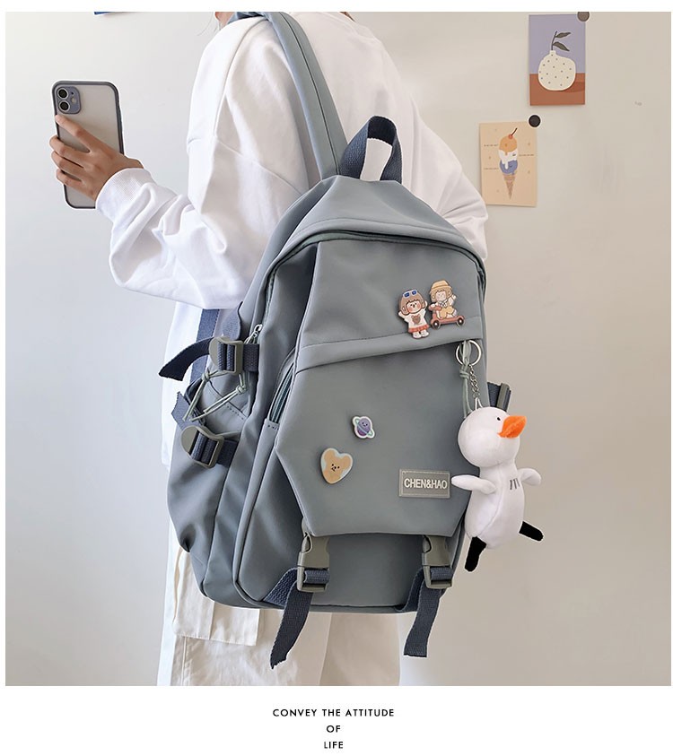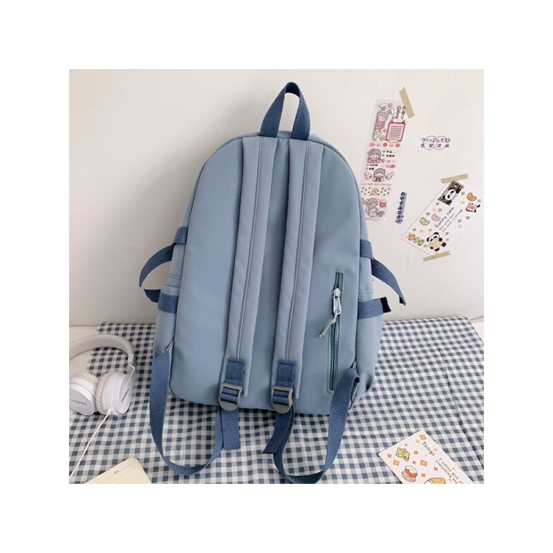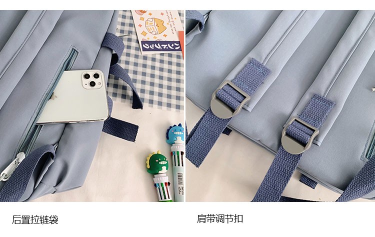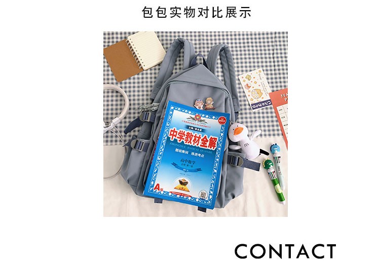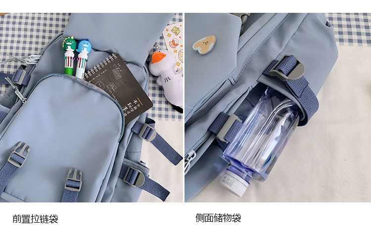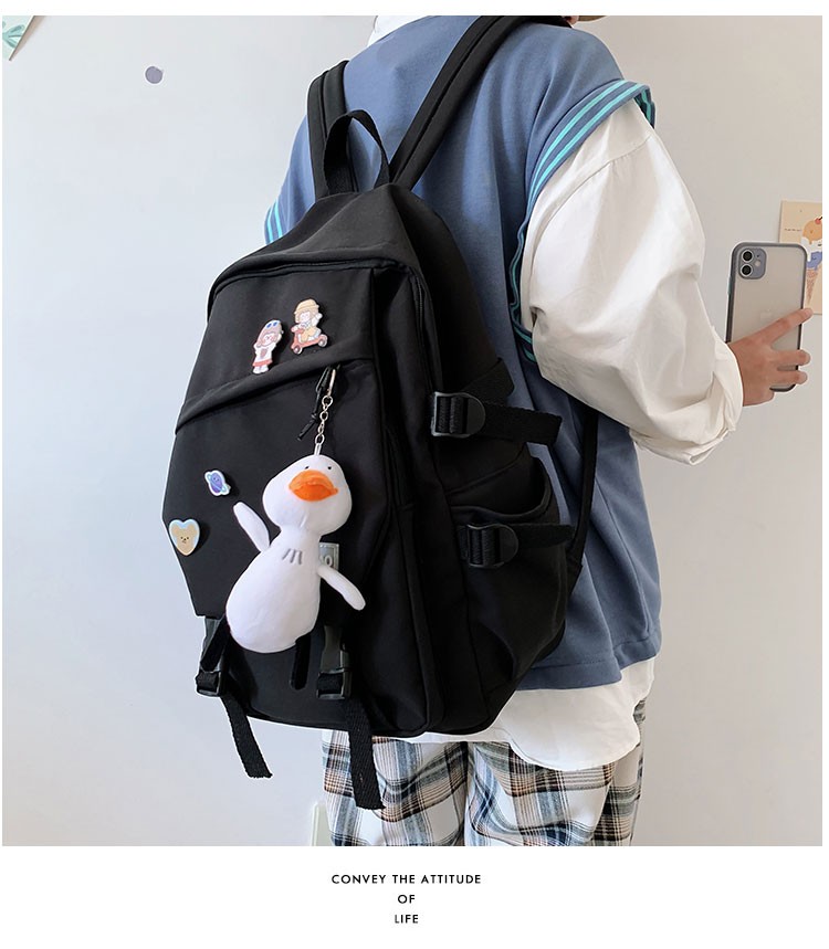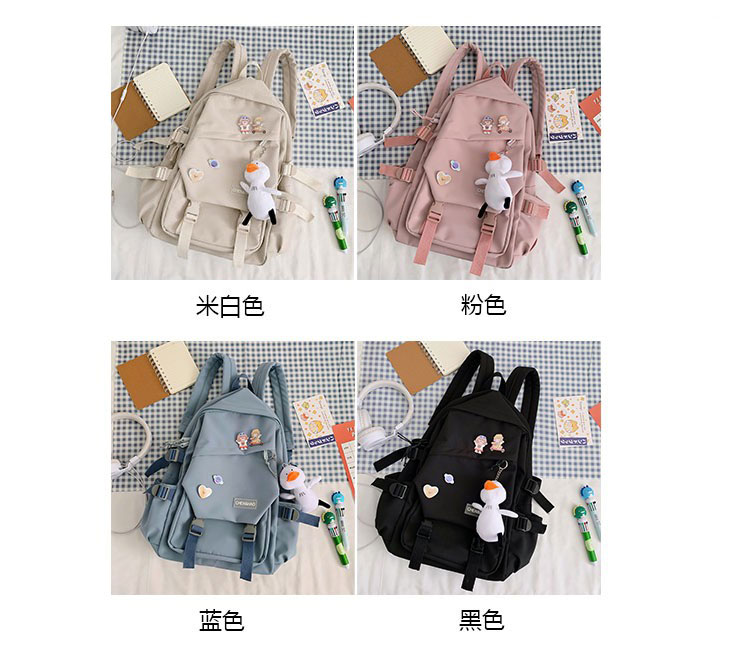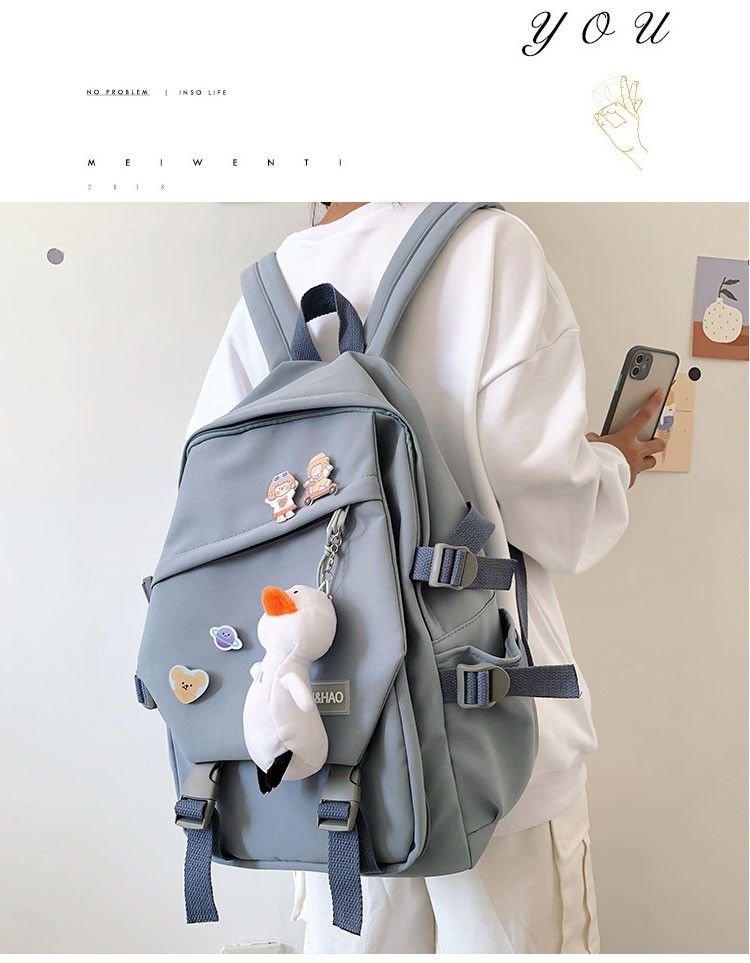 商品名称:格比森书包男女韩版原宿ulzzang初高中大学生背包 尼龙帆布双肩包大容量防刮耐磨笔记本电脑包 蓝色(带鸭子挂件/带徽章)