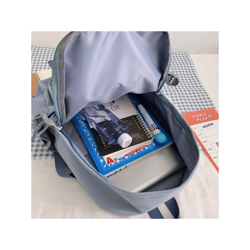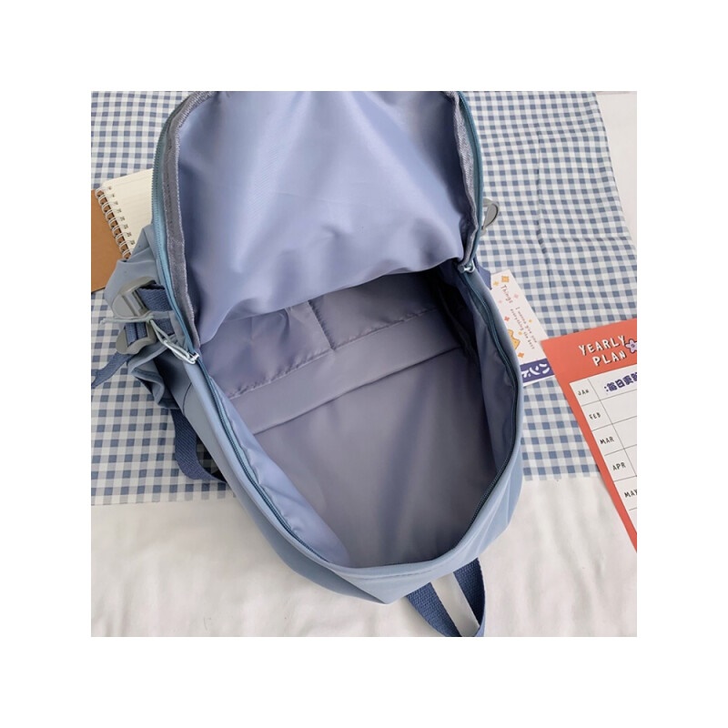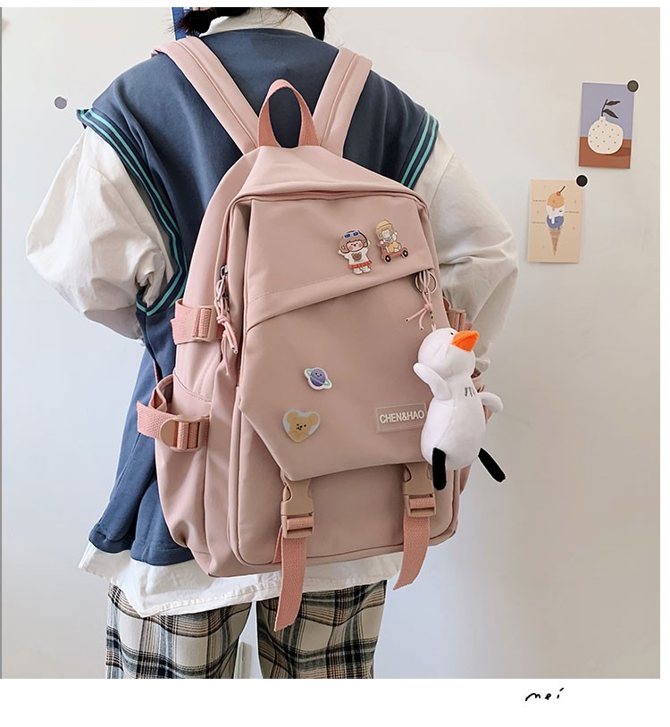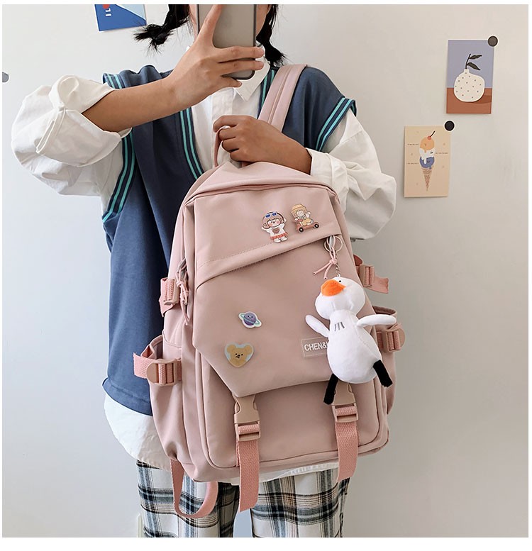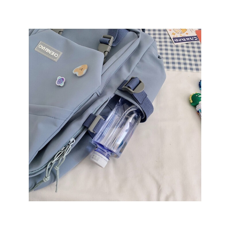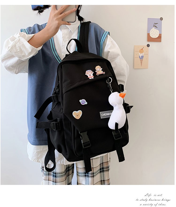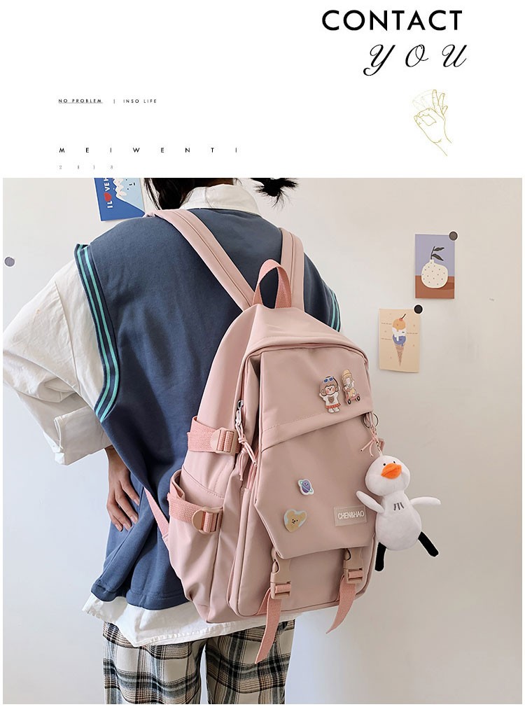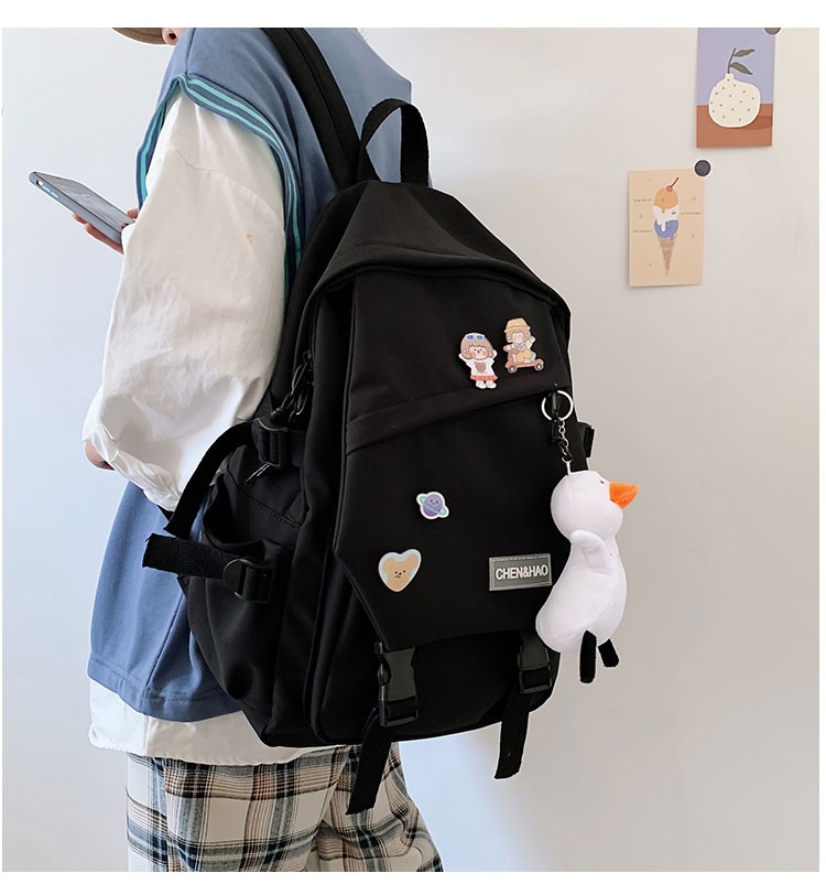 商品名称:格比森书包男女韩版原宿ulzzang初高中大学生背包 尼龙帆布双肩包大容量防刮耐磨笔记本电脑包 蓝色(带鸭子挂件/带徽章)