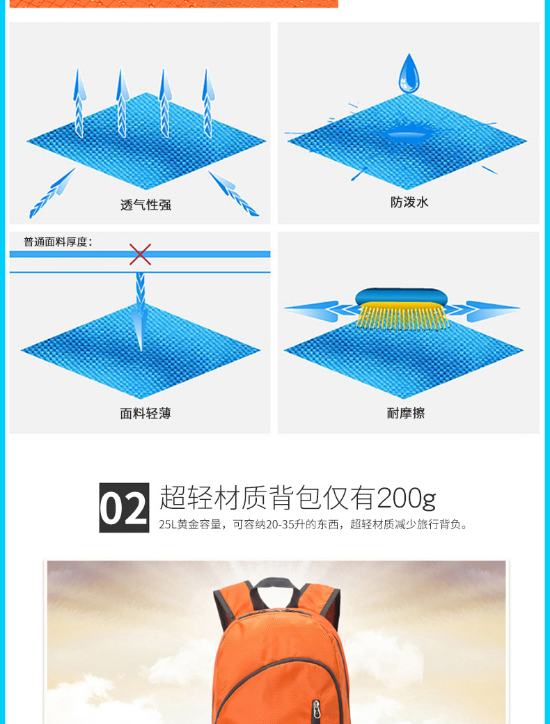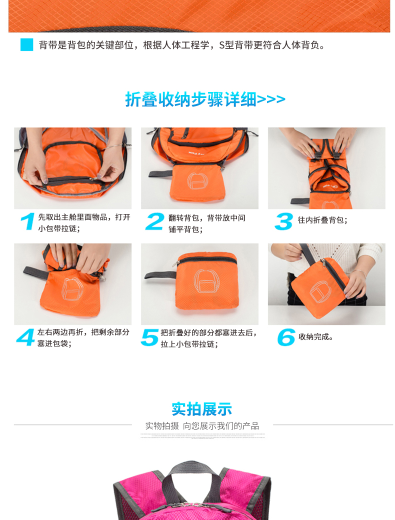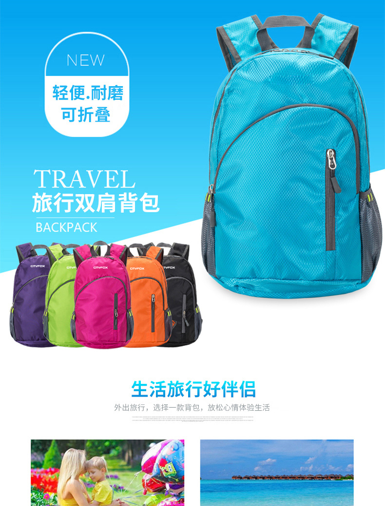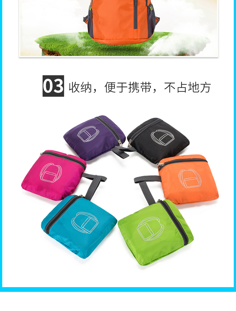 商品名称:户外包男女款超轻运动包皮肤包可折叠登山包防水旅行便携双肩背包WH1 孔雀蓝