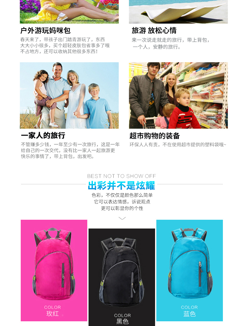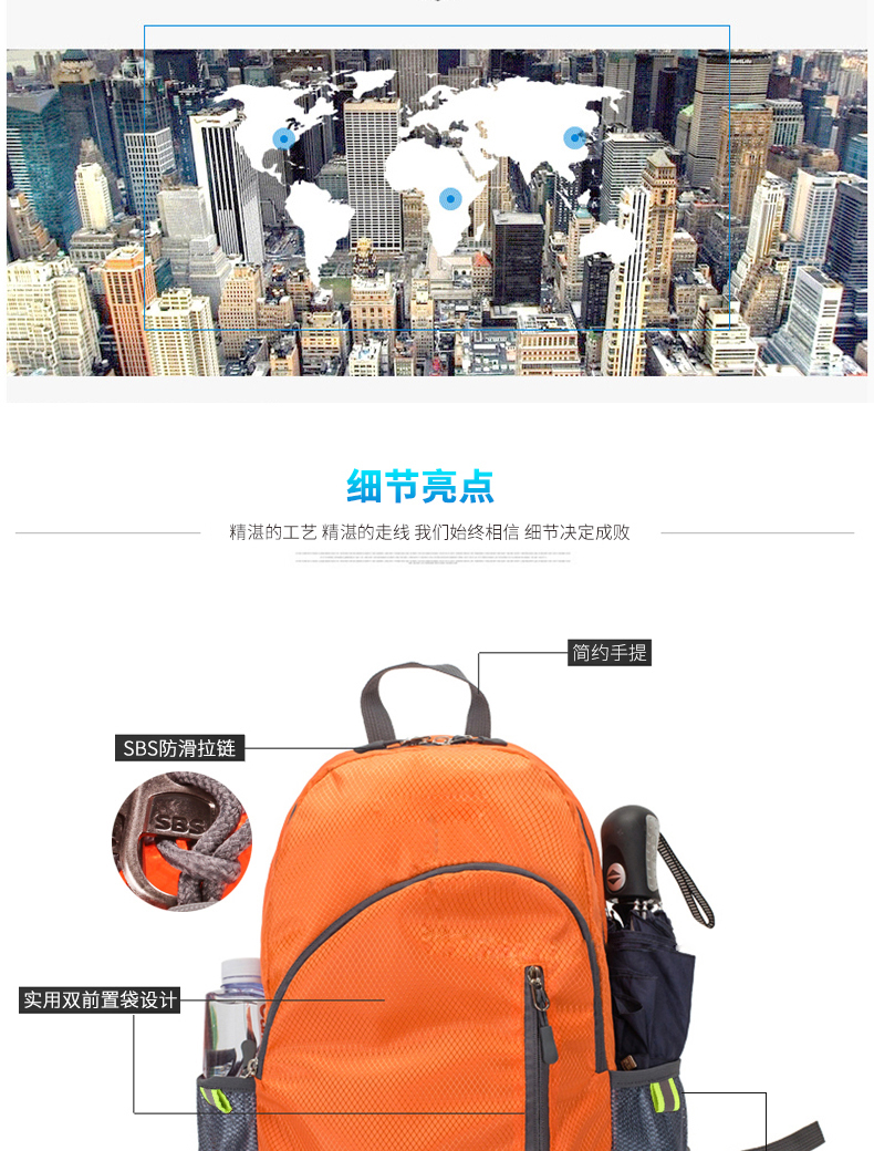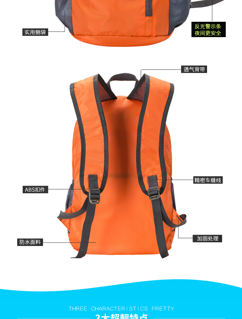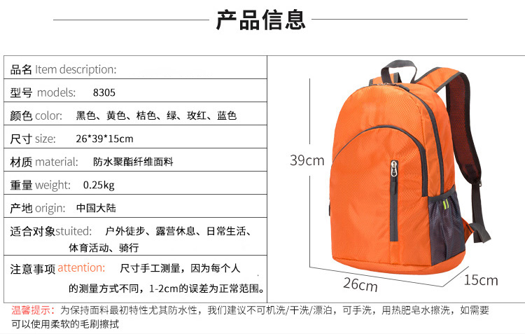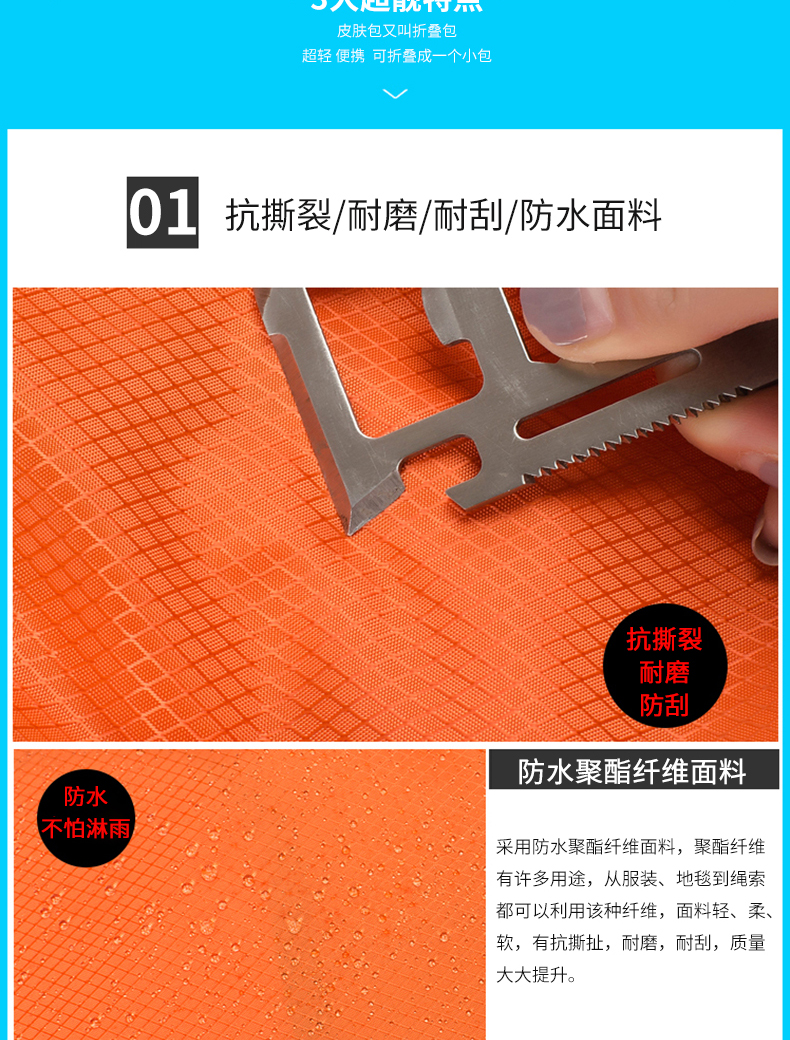 商品名称:户外包男女款超轻运动包皮肤包可折叠登山包防水旅行便携双肩背包WH1 孔雀蓝