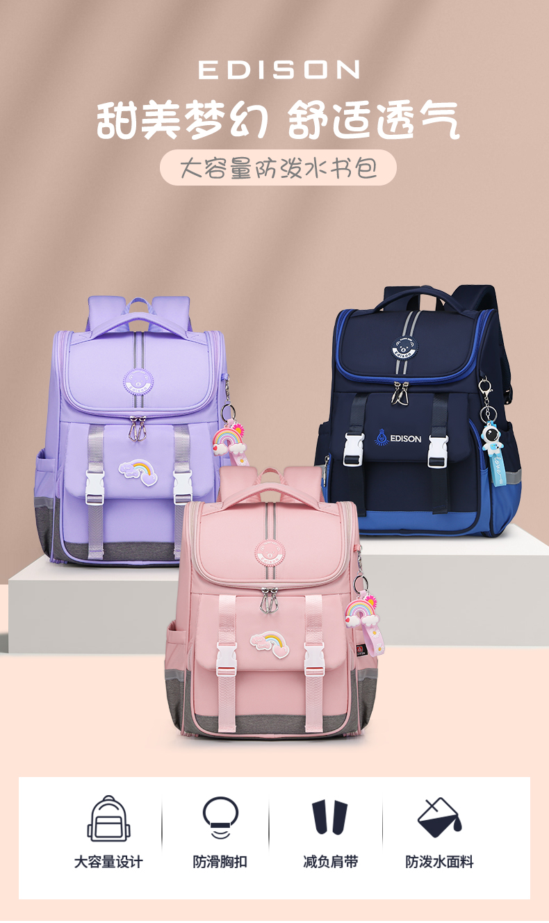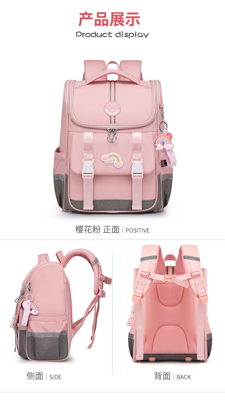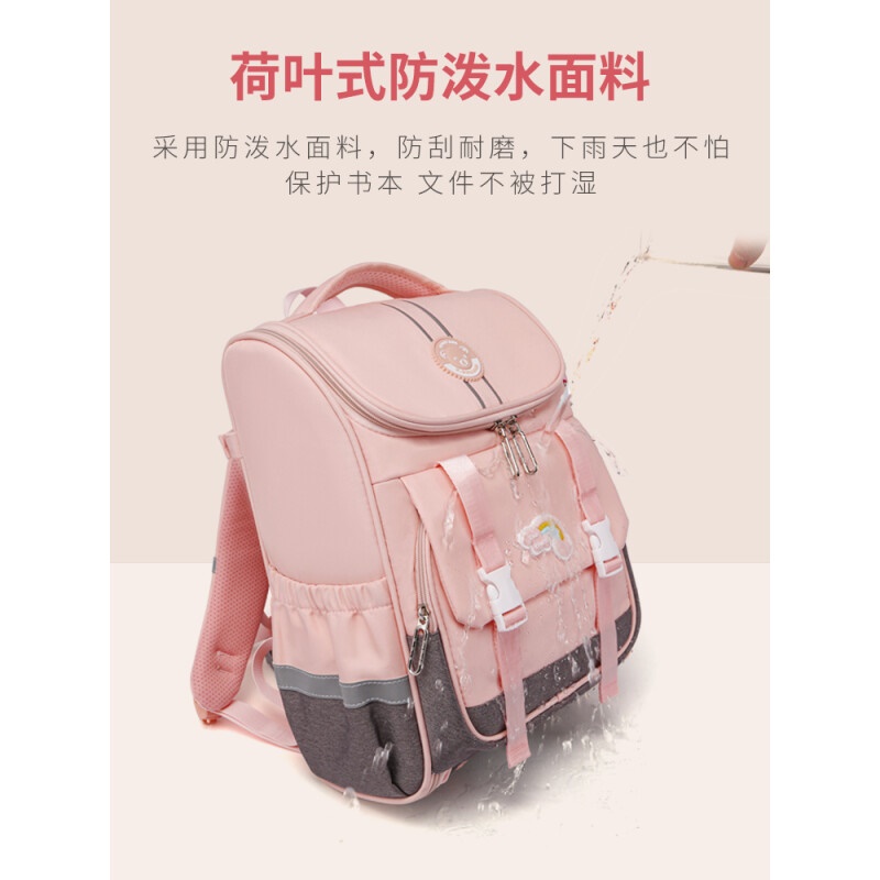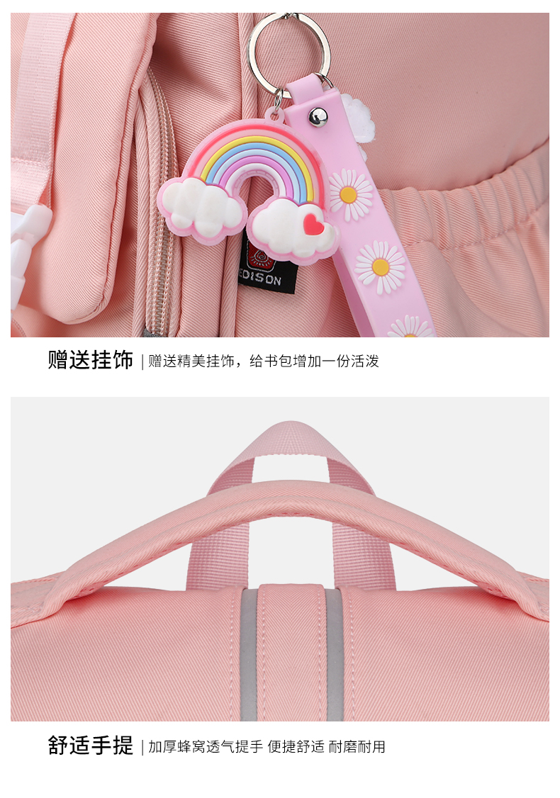 商品名称:爱迪生(Edison)小学生书包女孩大容量防泼水1-6年级轻便减负透气耐脏时尚甜美儿童双肩背包 2210-1 樱花粉