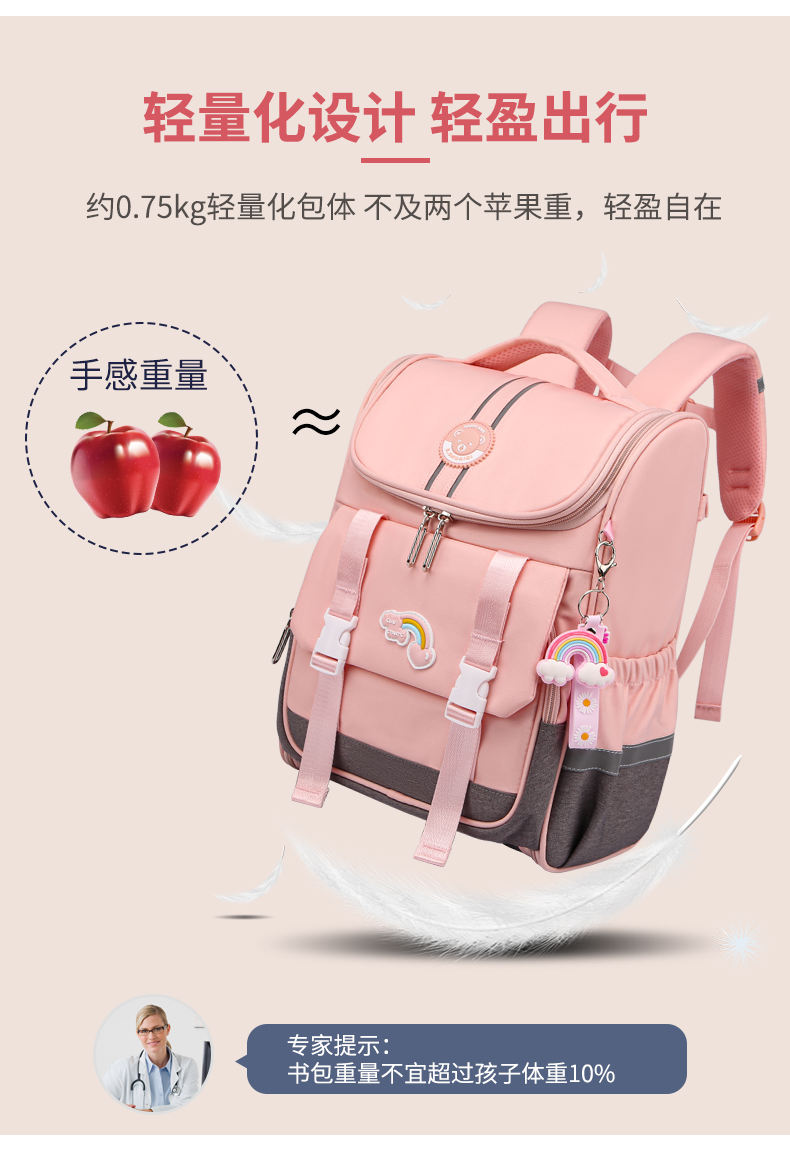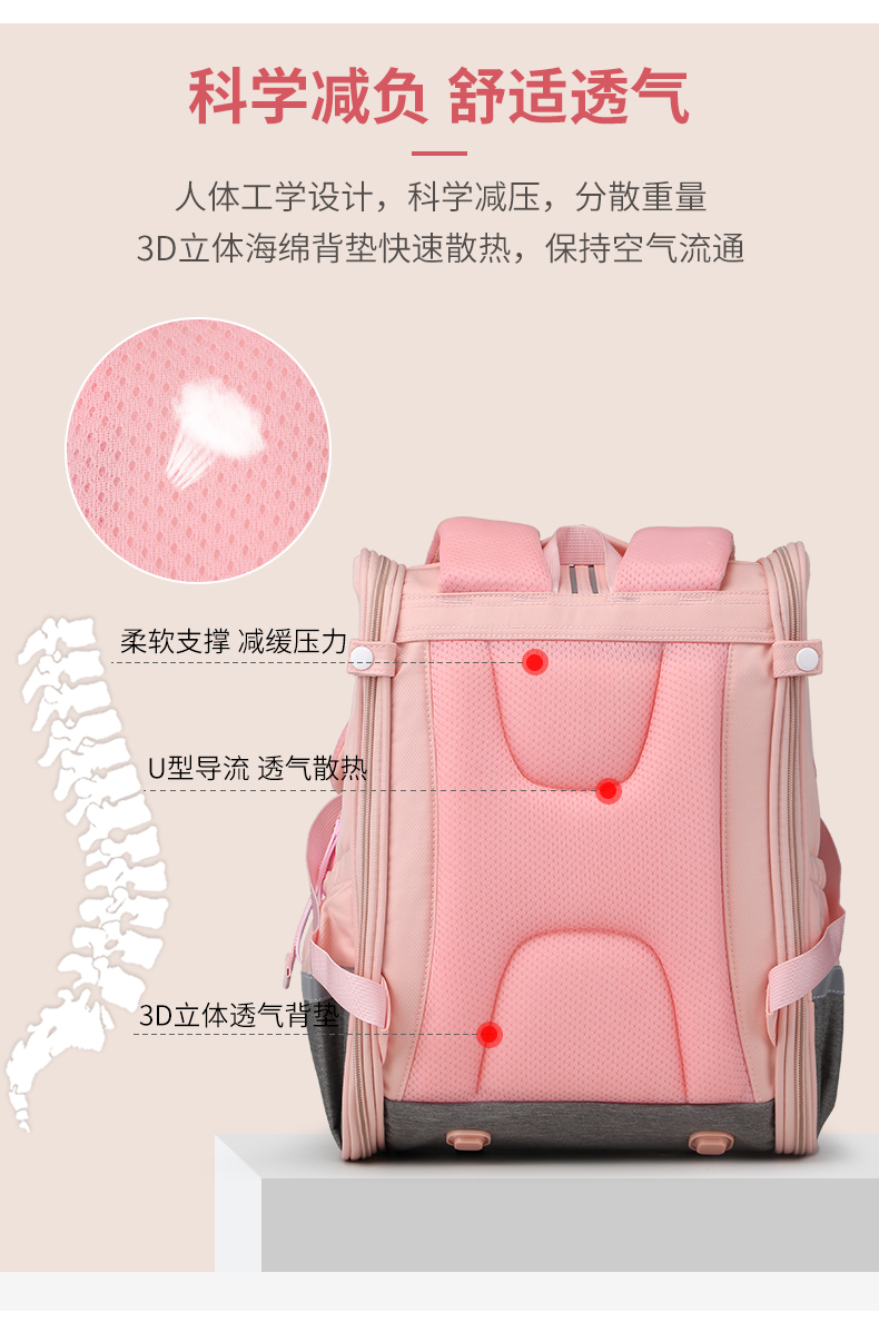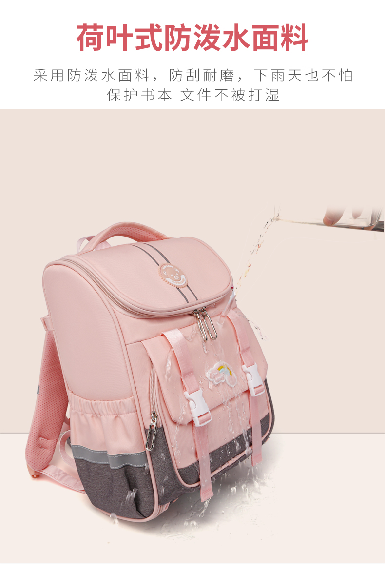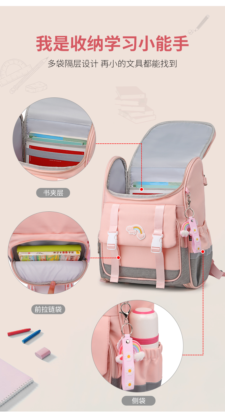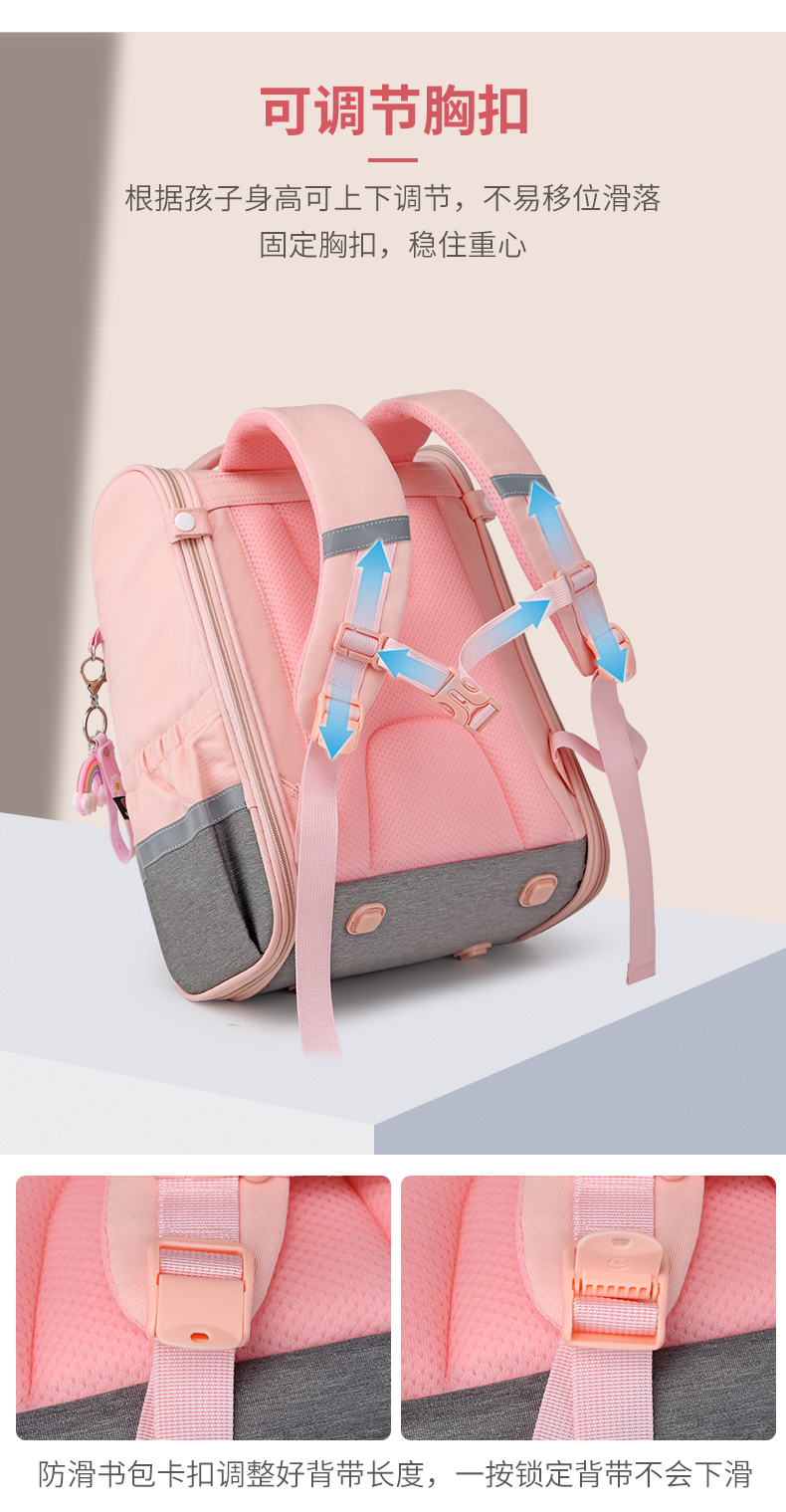 商品名称:爱迪生(Edison)小学生书包女孩大容量防泼水1-6年级轻便减负透气耐脏时尚甜美儿童双肩背包 2210-1 樱花粉