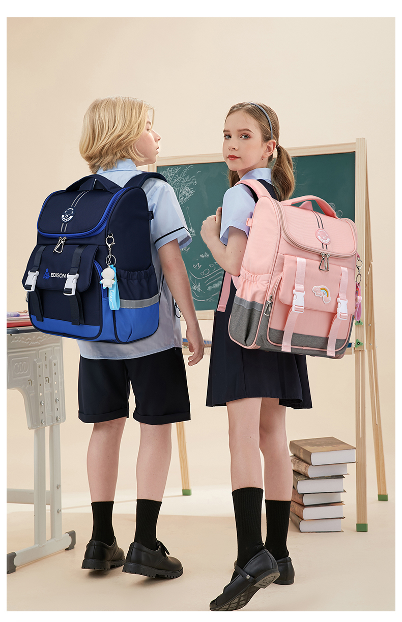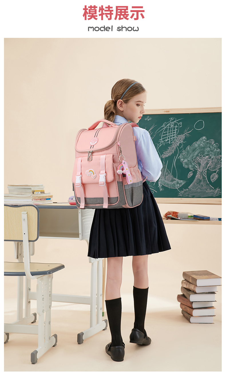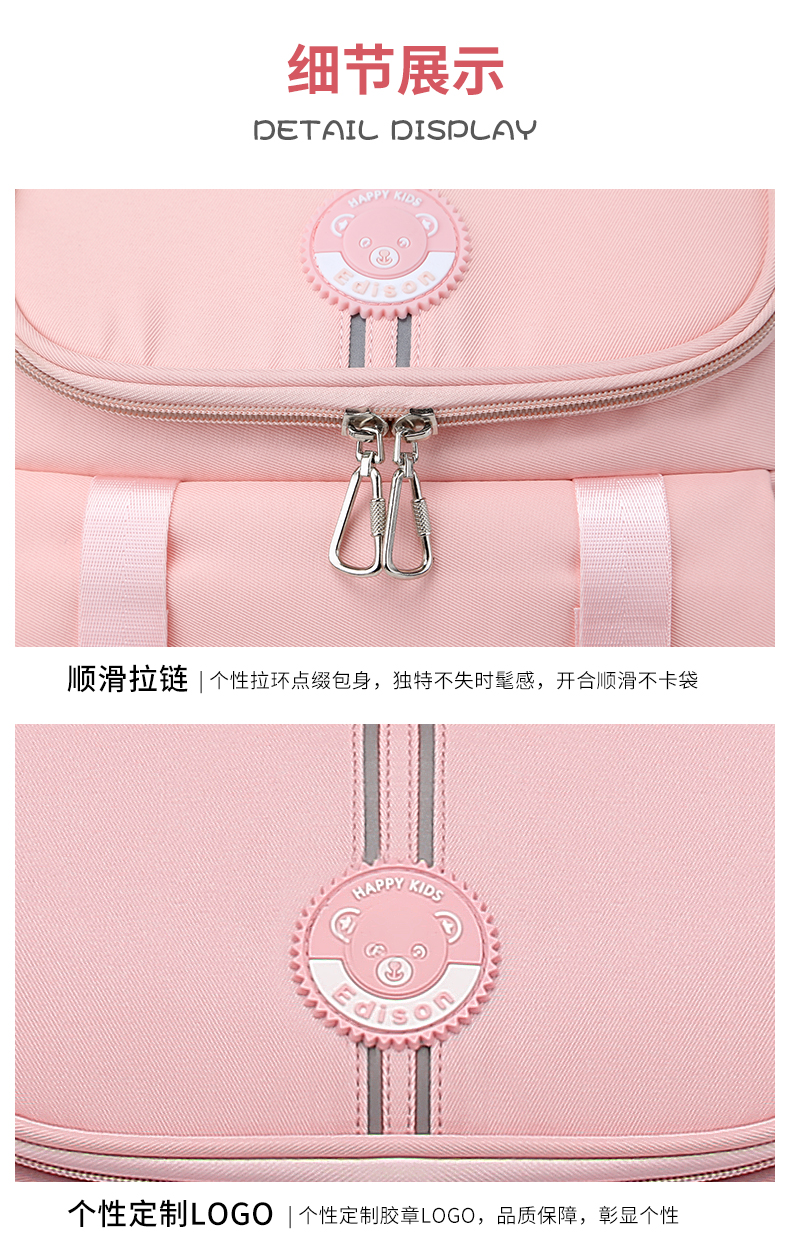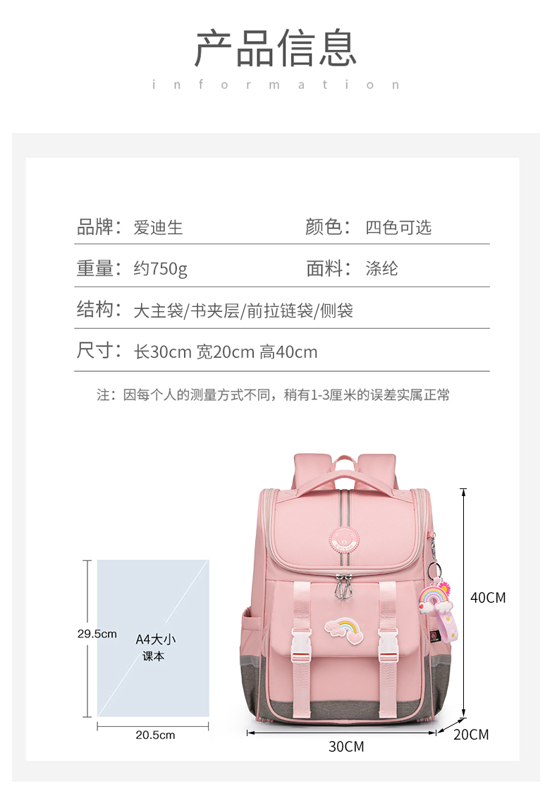 商品名称:爱迪生(Edison)小学生书包女孩大容量防泼水1-6年级轻便减负透气耐脏时尚甜美儿童双肩背包 2210-1 樱花粉