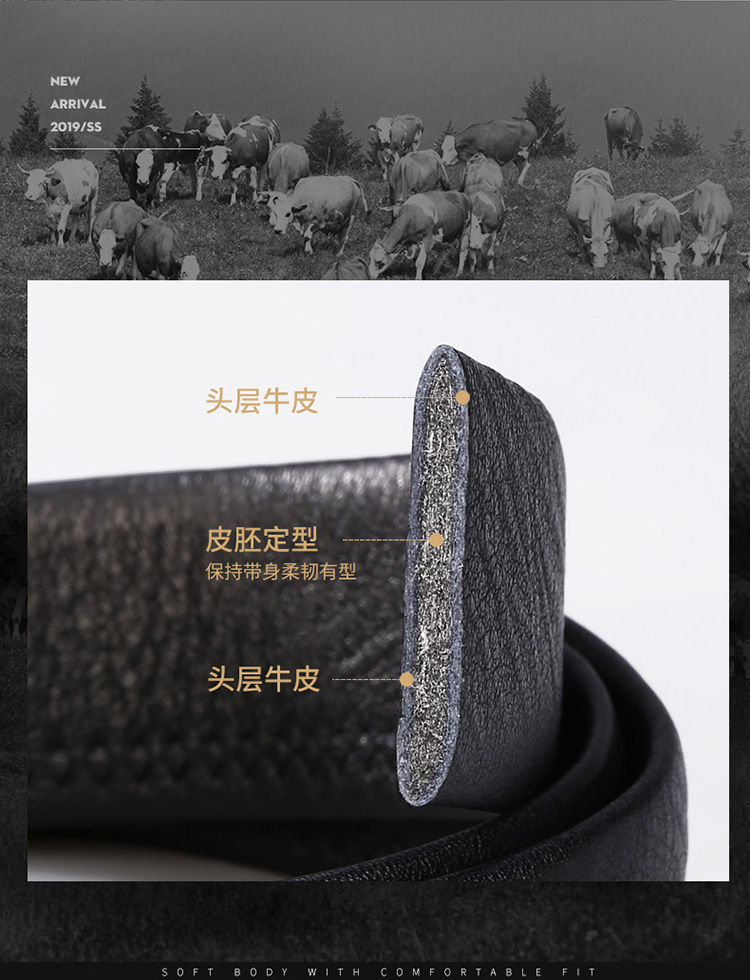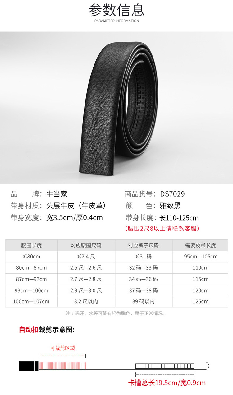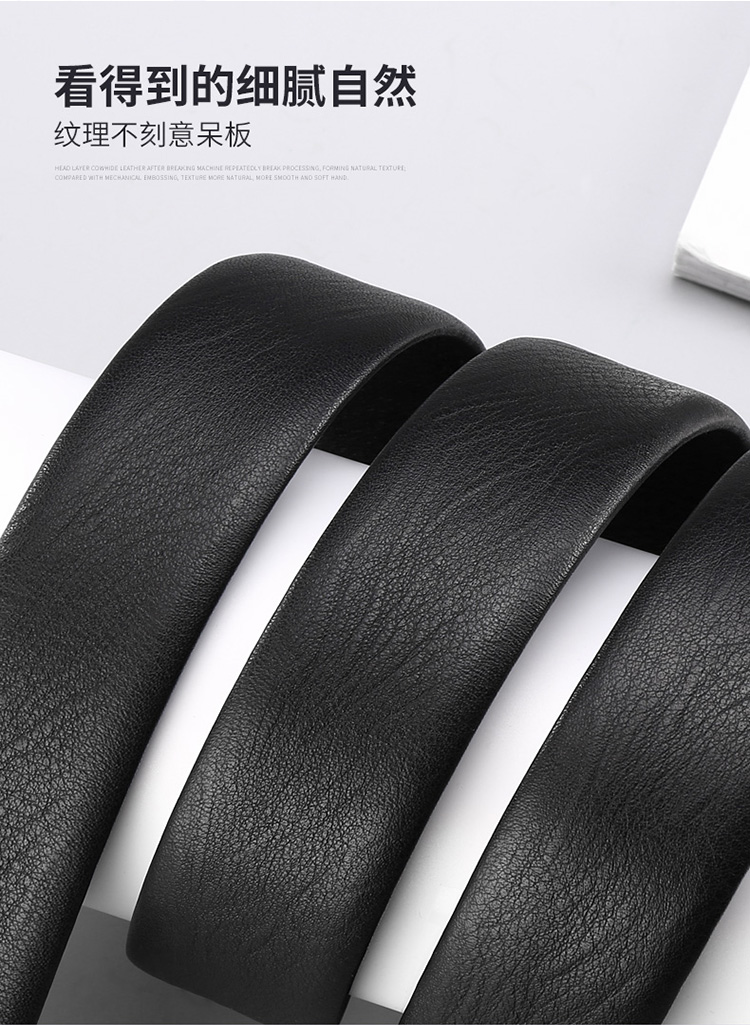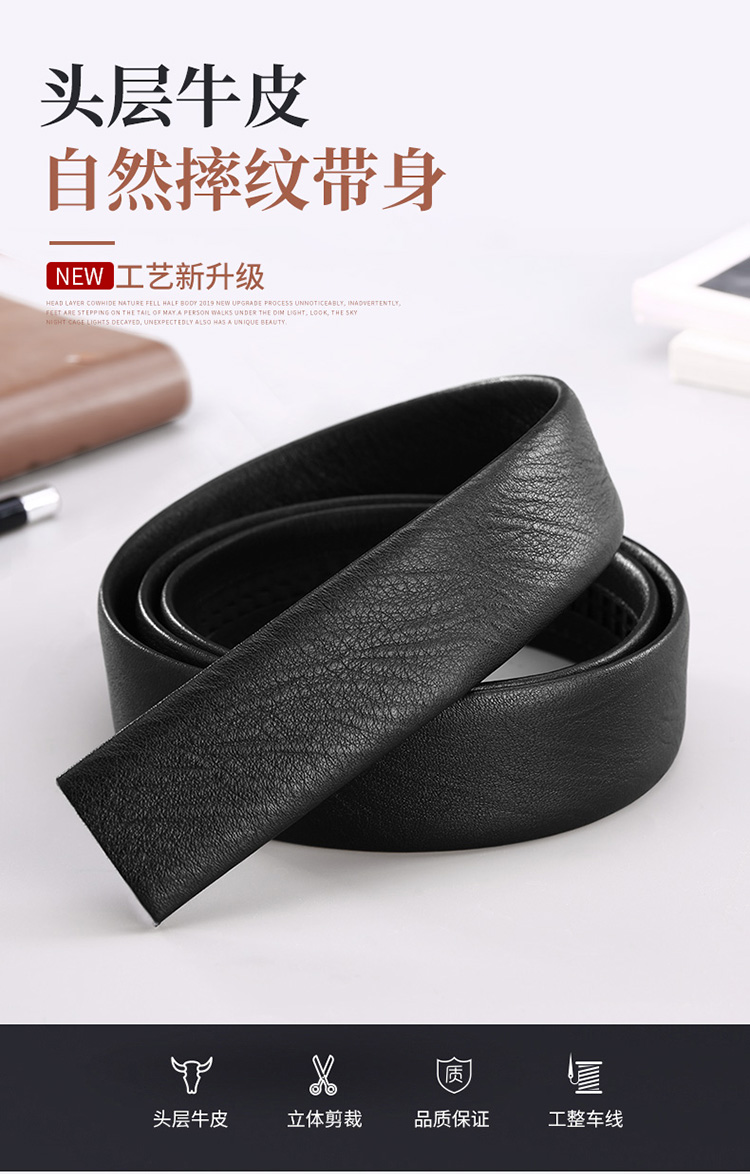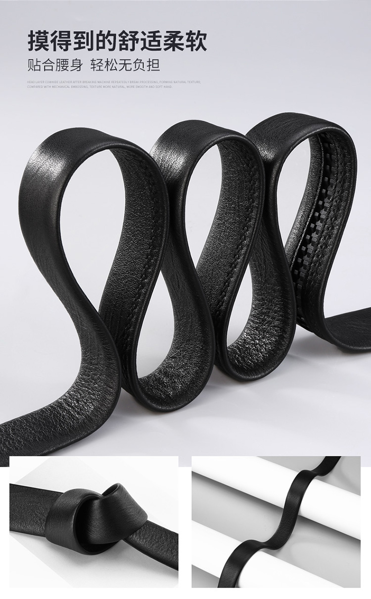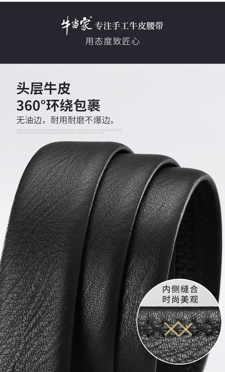 商品名称:牛当家皮带男 自动扣带身 无头腰带男士头层牛皮商务裤带7029 雅致黑