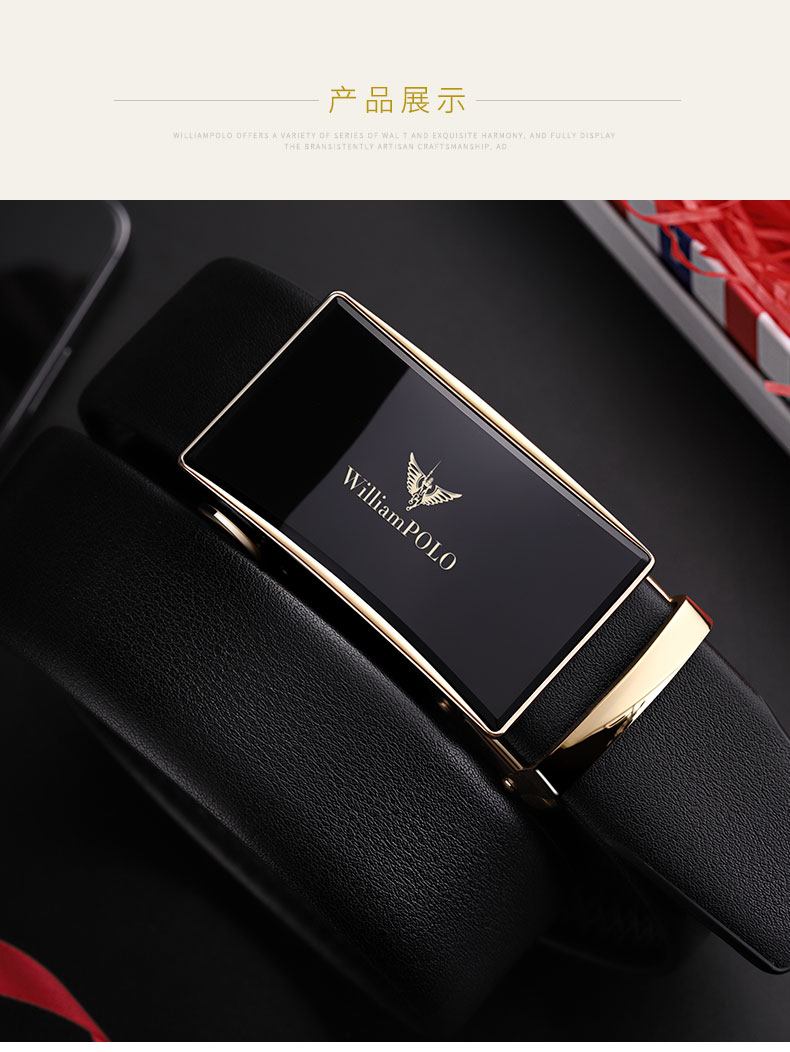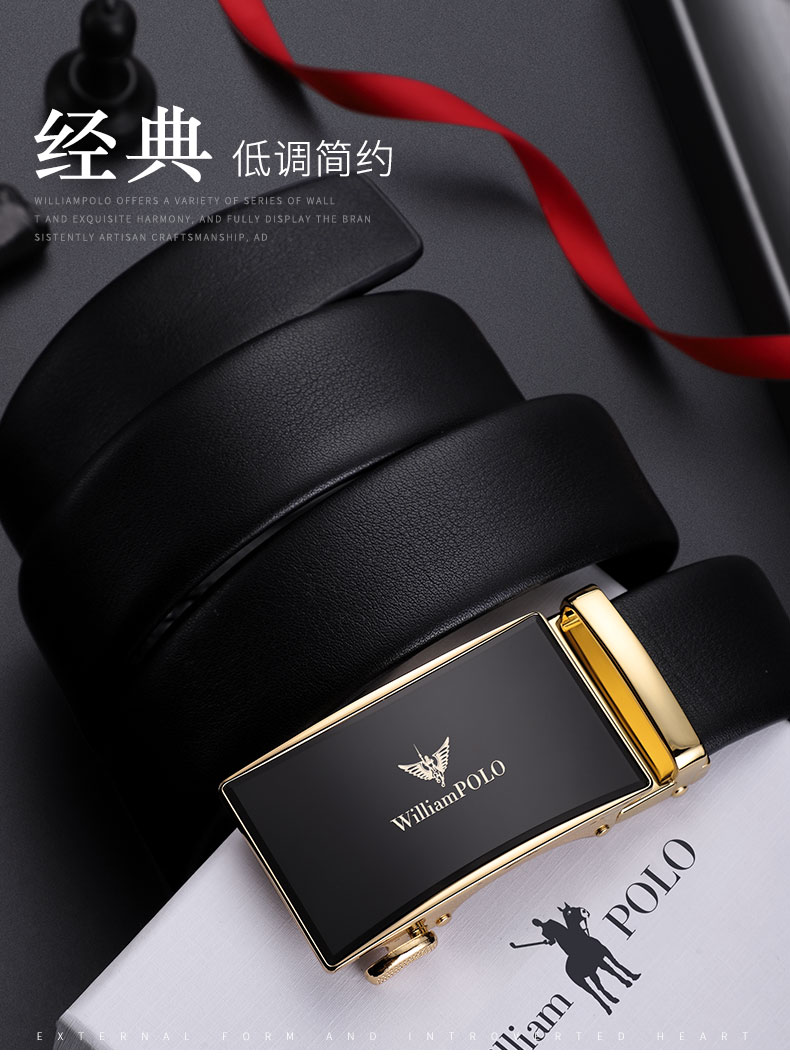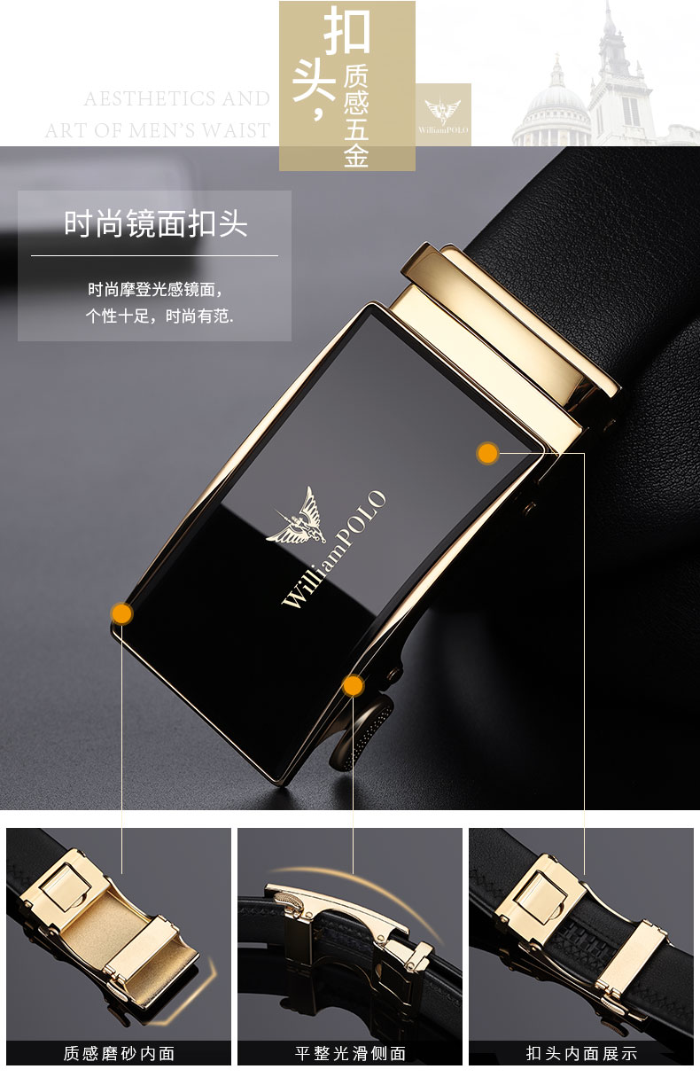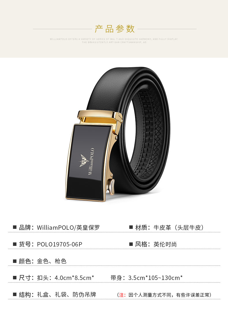 商品名称:英皇保罗 WILLIAMPOLO 皮带男真皮自动扣头层牛皮青年男士腰带商务简约百搭裤带 19706 金色