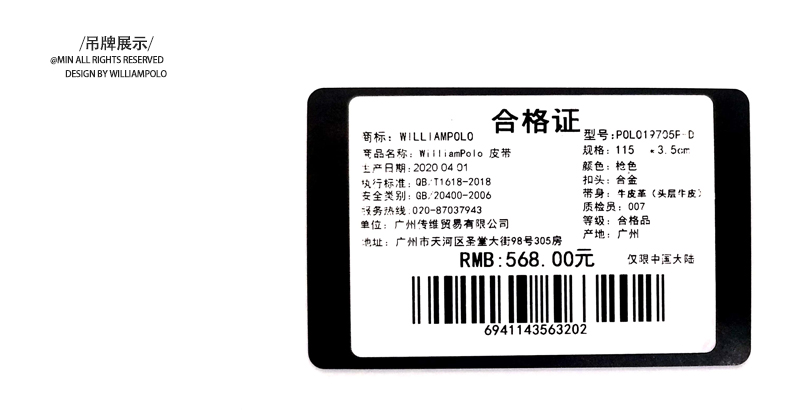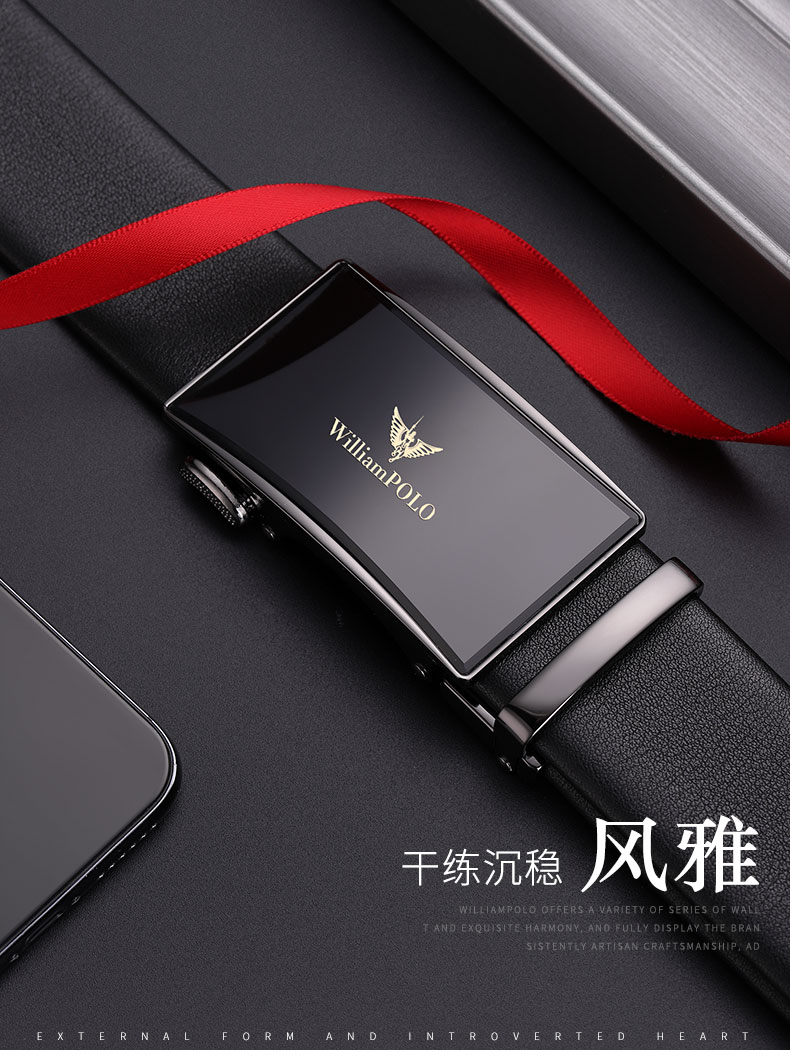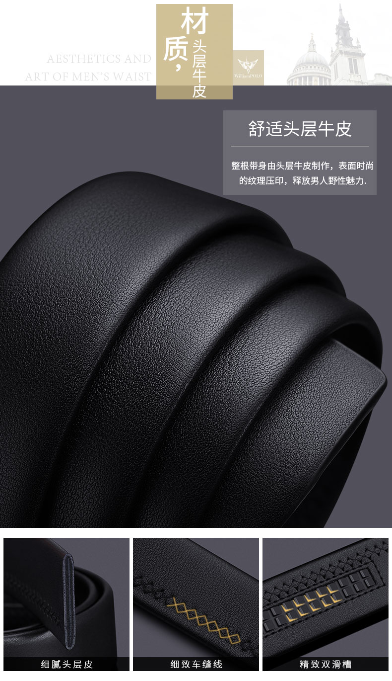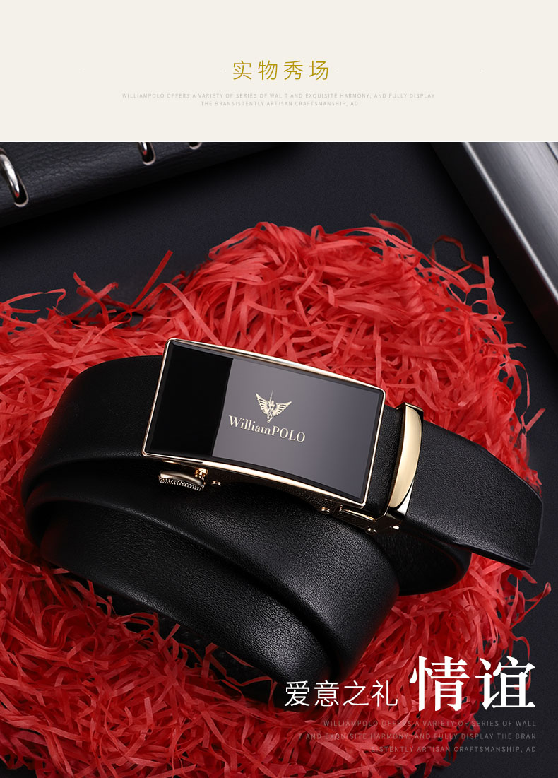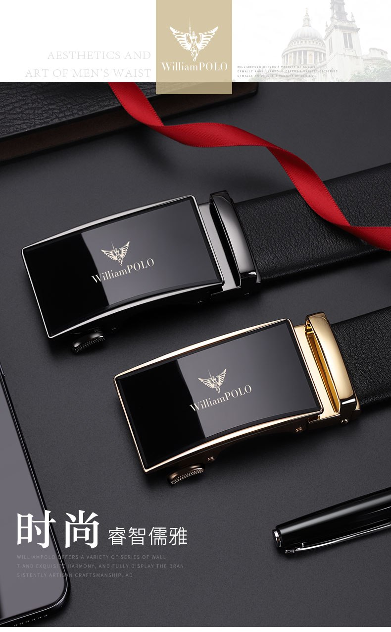 商品名称:英皇保罗 WILLIAMPOLO 皮带男真皮自动扣头层牛皮青年男士腰带商务简约百搭裤带 19706 金色