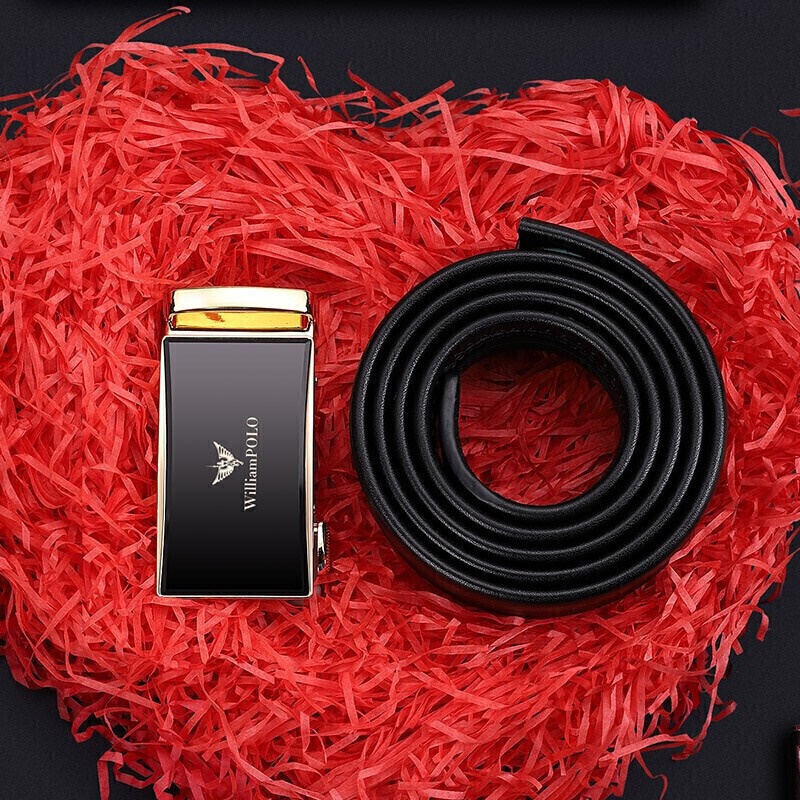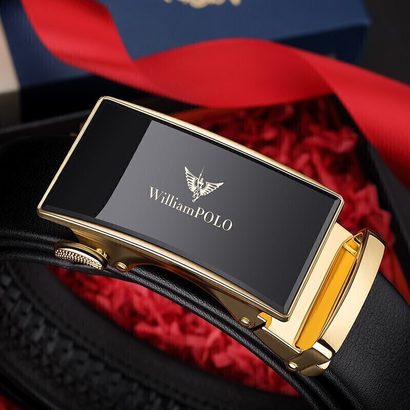 英皇保罗 WILLIAMPOLO 皮带男真皮自动扣头层牛皮青年男士腰带商务简约百搭裤带 19706 金色