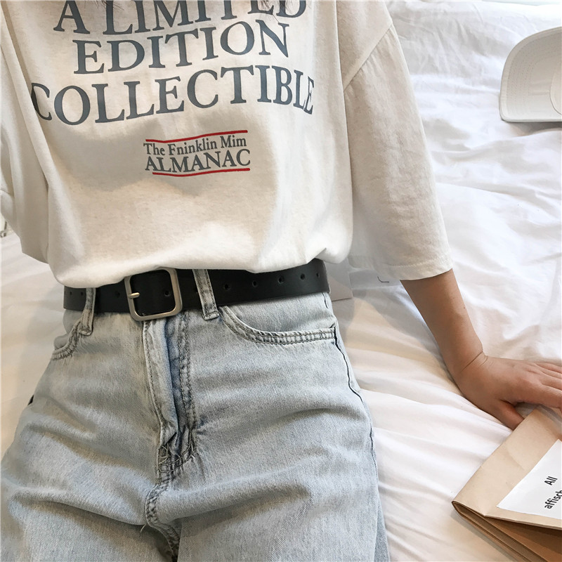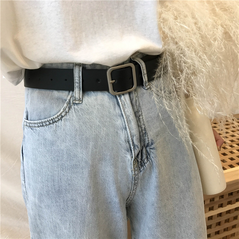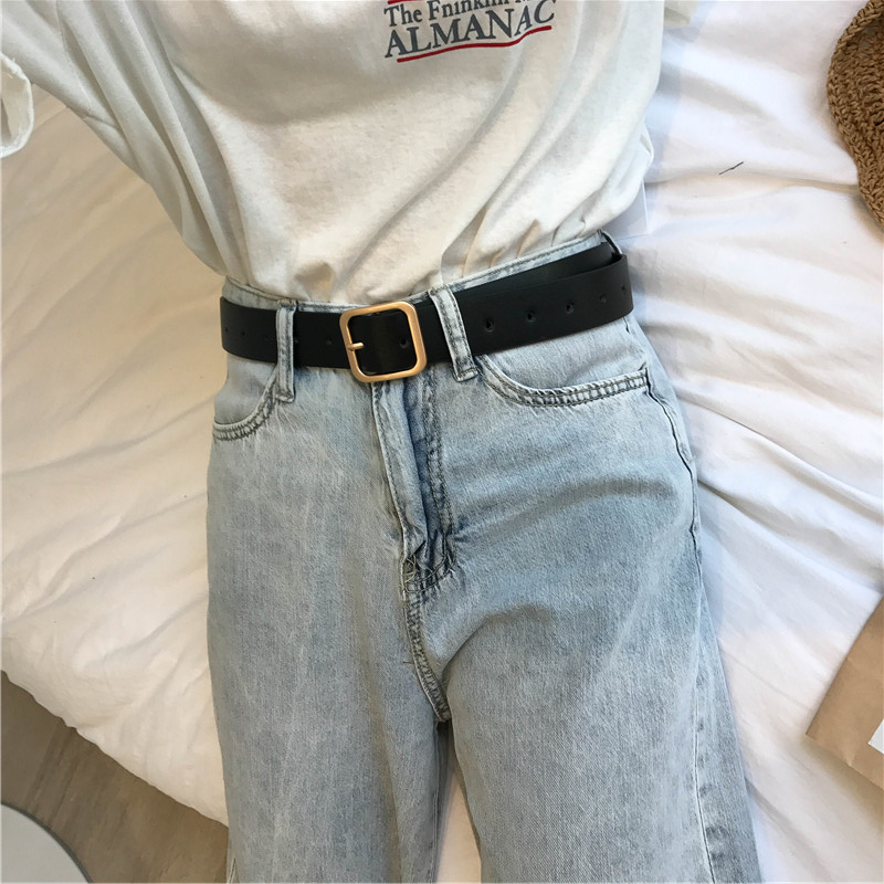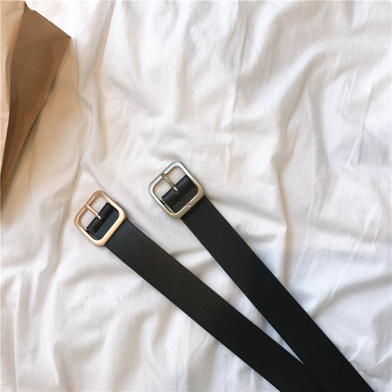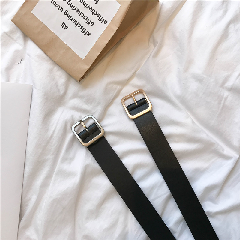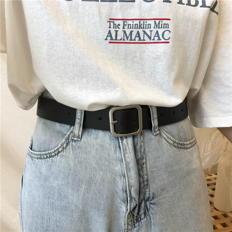 爱满(AIMAN) 凹造型pu方扣腰带男女通用宽皮带chic学生韩国时尚ins裤带百搭黑SN2118 银色