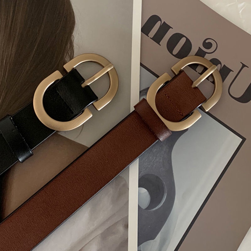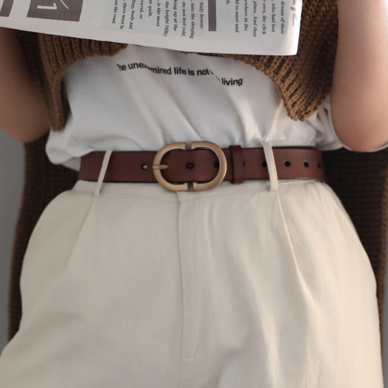 皮带真皮纯牛皮 腰带女ins风简约百搭配牛仔带装饰工装裤韩国男啄木鸟 咖啡色