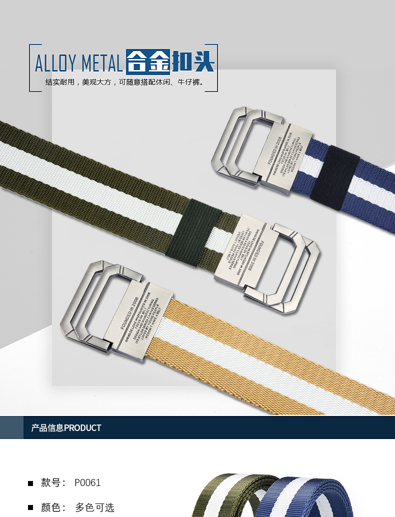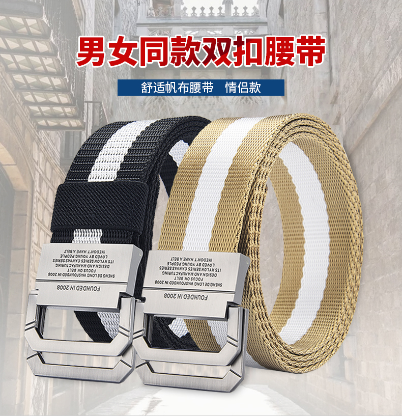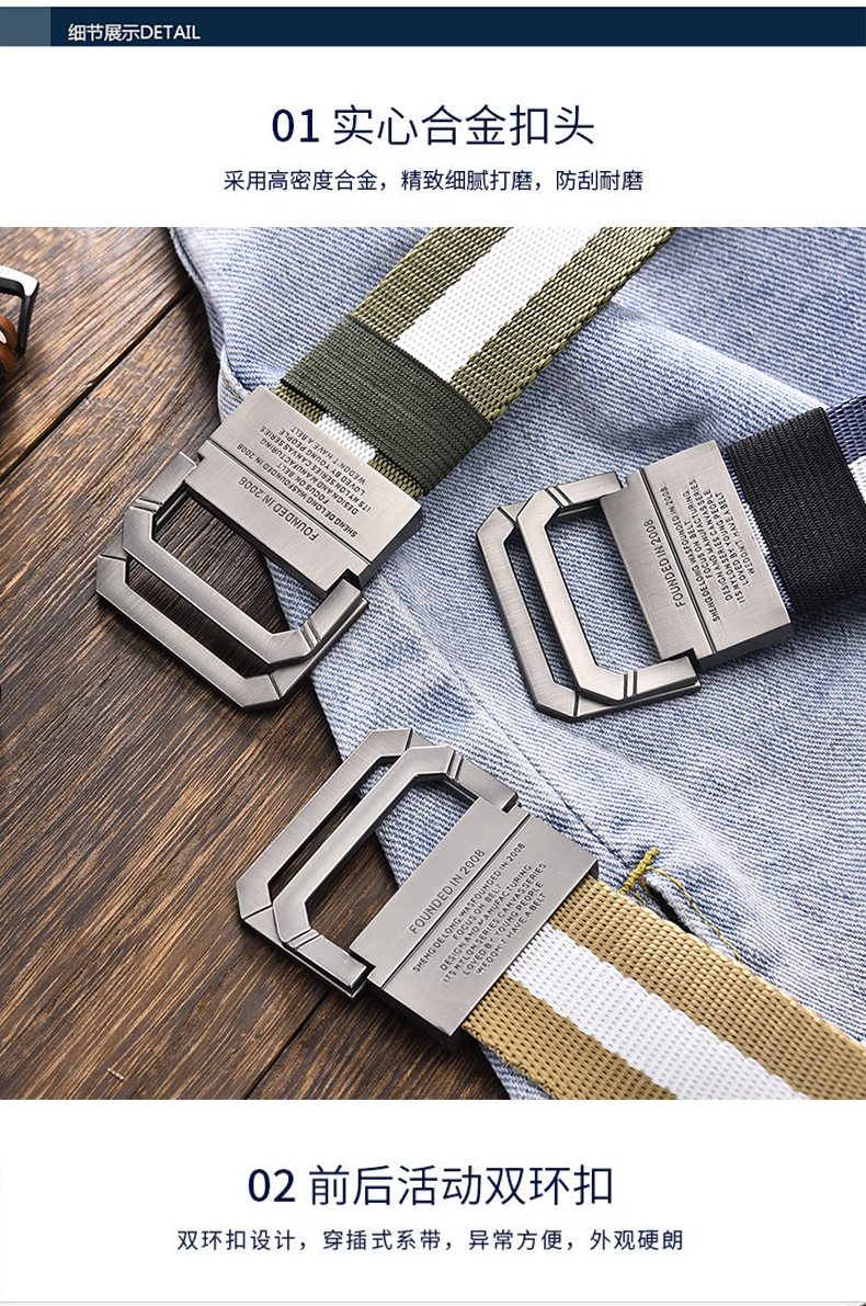 商品名称:帆布腰带男士皮带双环扣ins女裤腰带潮韩版工装青年学生户外军训 P0061绿色 110cm