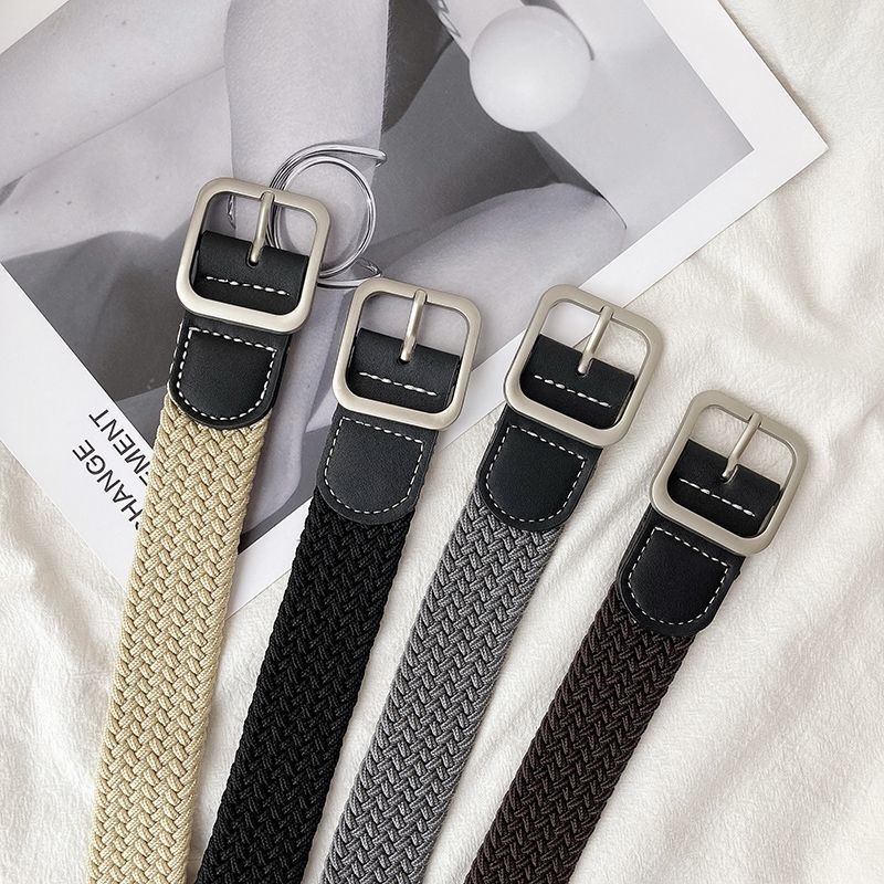 商品名称:华埠 编织腰带女ins风学生装饰潮流简约时尚百搭男士帆布皮带 圆扣蓝色 90cm